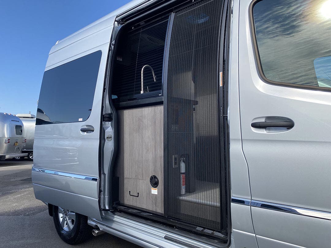 Full Body Kit • Hidden Hitch Cover Rear Bumper • Fog Lamps • Mercedes-Benz Aluminum Wheels • High Performance Headlights • Power Heated Mirrors • Power Armless Awning w/Auto Retract • Power Entry Step (sliding side door) • LED Lighting – patio, service box locations, adjustable awning, under carriage • Locking Service Boxes • Exterior Shower with Hot & Cold Water • LP Accessory Hook-up (Grill) • Power Rear Screen • Side Screen Door • Power Sliding Door