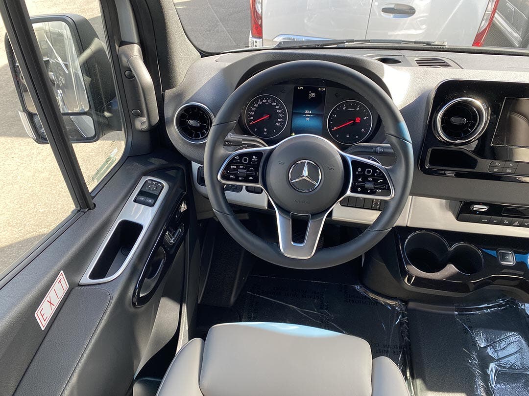 Power Adjustable Heated Driver/Passenger Seats • Advanced Multifunctional Steering Wheel • Push Button Keyless Start • Steering Wheel Paddle Shifters • Entry Door Lighting • In-Dash Wireless Cell Phone Charging • Overhead Map Lights • In-Dash Maintenance Monitoring System • MBUX Infotainment System (Mercedes-Benz User Experience) touch screen, pinch, zoom, voice recognition, Apple Carplay, Android capability • Rear View Camera Monitor • Custom Carpet Floor Mats • Privacy Shades • Rear Cabin Carpet Kit (Optional)