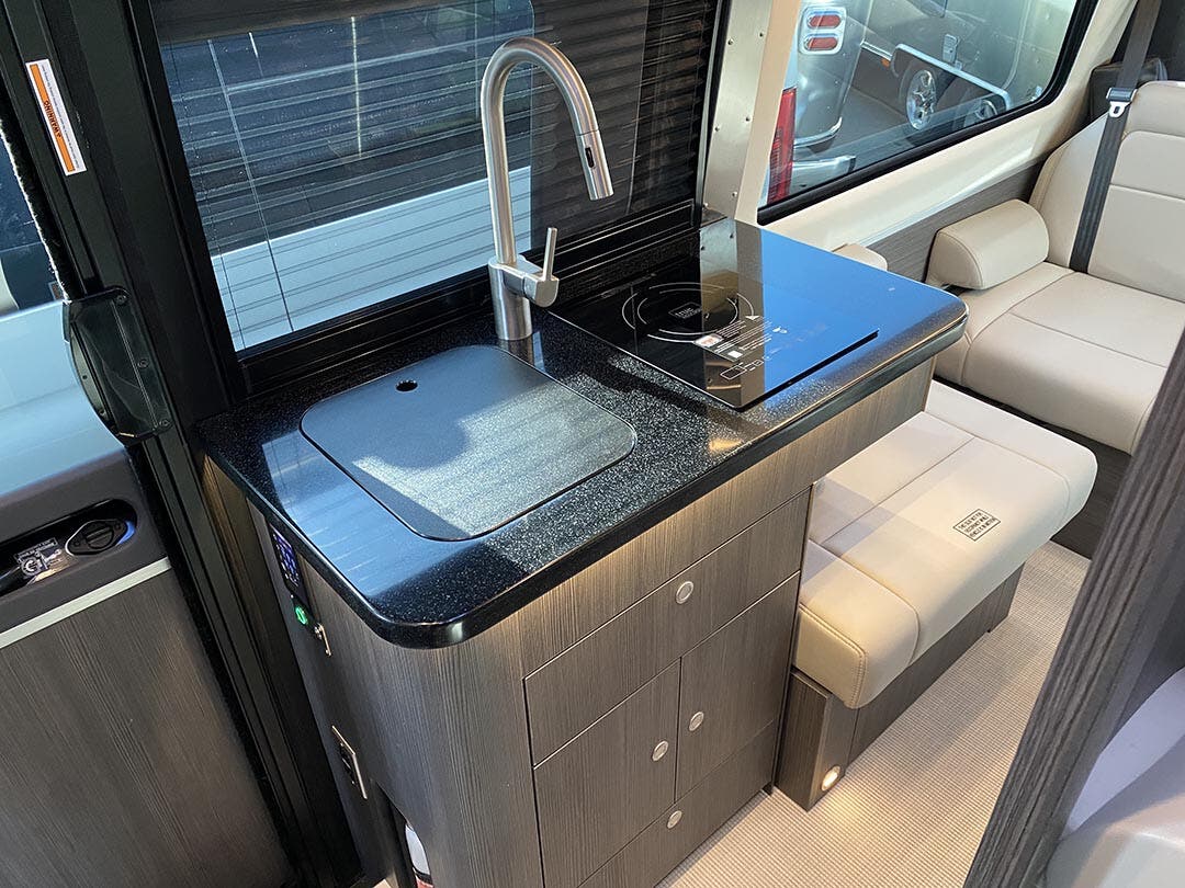 Dupont Corian® Countertop with Backsplash • Corian® Galley Slide-Out Shelf • Sink with Integrated Cover • Cooktop with Integrated Cover • Under Counter Lighting