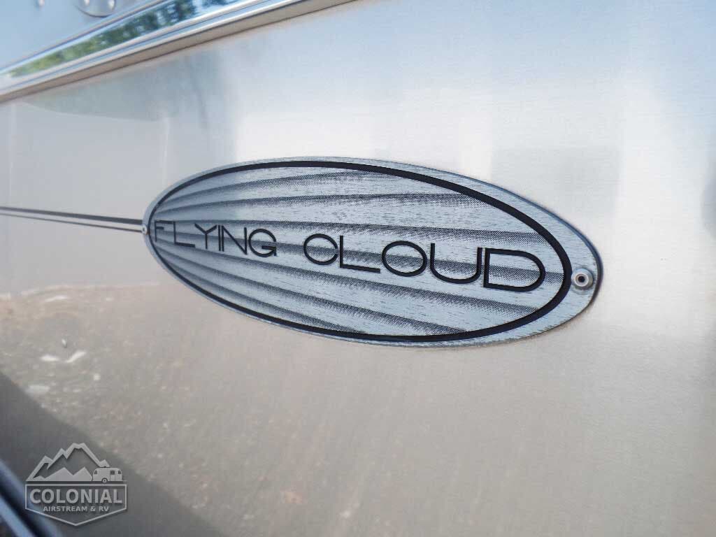 Bright Aluminum Finish – White Finish on Roof • Polished Rear Bumper w/Storage • Flying Cloud Graphics w/Chrome Beltline & Rub-rail Inserts • Flying Cloud Medallion • License Plate Bracket • Grab Handle • Aluminum LPG Bottle Cover • Enclosed/Insulated Underbelly • C.S. & R.S. Awning Rail • 16′ 4.5″ Patio Awning • Solar Stone Guards • Main Door w/Opaque Window • Wrap Protectors • Cast Taillights- 6″ LED Oval • Diamond Plate Exterior Storage Compartment • Exterior Shower.