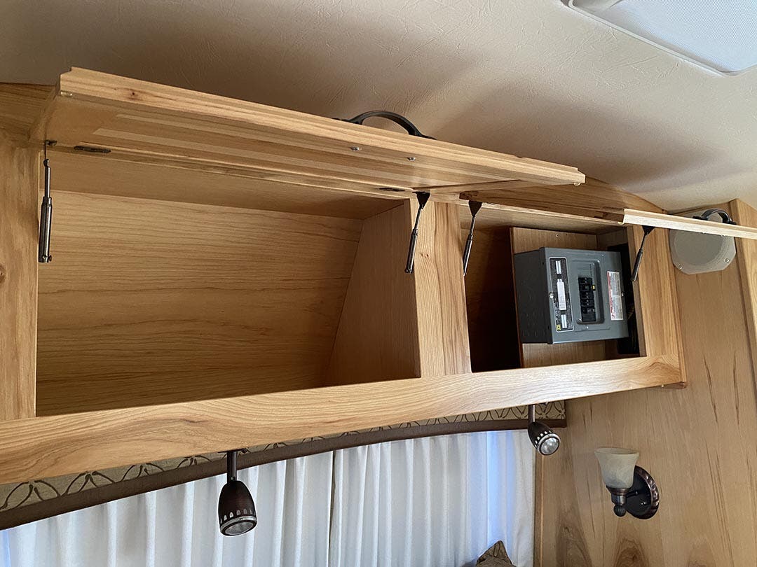 Removable Bed Storage Boxes • Quilted Bedspreads w/Reverse Sham • Pillow Top Foam Mattress • Bed Pillows (2) • Lift-Up Bed Storage • Cedar Lined Wardrobes • Vinyl Flooring Throughout • Hardwood Framed Mirrored Hinged Wardrobe Doors • Twin Bed Model has 34″ x 78″ Beds, Nightstand, C.S. & R.S. Hanging Wardrobes • Queen Bed Model has 60″ x 75″, Pull-out Drawers Under Bed, Wall Lamps, Reading Lights, C.S. & R.S. Rear Corner Wardrobes w/Drawer Storage • Throw Pillows • Sleeping Capacity 2-6.