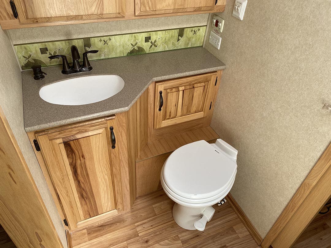 Deep Cycle Batteries (2) • 7-Way Trailer Plug • 55 Amp Converter • 12 Volt DC Circuit Breakers • 12 Volt Fluorescent Ceiling Lighting w/RFI Ballast • 120 Volt Exterior Outlet • GFI Protection for Galley, Bath & Exterior Outlet • LED Step Light • Water Pump Switch in Bath & Galley • 12 Volt Battery Disconnect (Manual) • Solar Battery Charger Pre-wire • Exterior Lighting Package: Hitch, Dump Valve, Area & Exterior Compartment LED Lights • 30 Amp Service w/Detachable Power Cord • Remote Generator Ready (2nd 30amp Power Connection in Front of Trailer for Easy use of Pick-up Truck, Bed Mounted Generator not available with 50amp service).