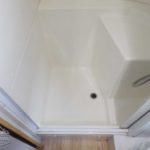Towel Bar (1) • Roll-Away Shower Door • Hinged Bath Door w/Mirror • Fiberglass Shower W/Soap Dish • Retractable Clothes Line in Shower • Mirrored Medicine Cabinet • Stainless Steel Round Sink • China Toilet.
