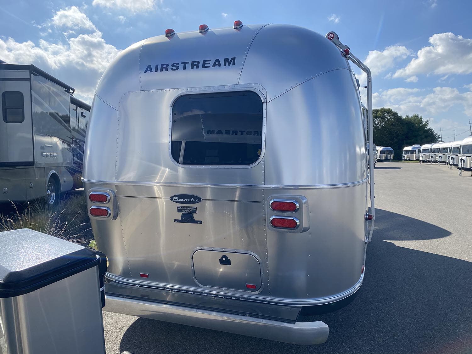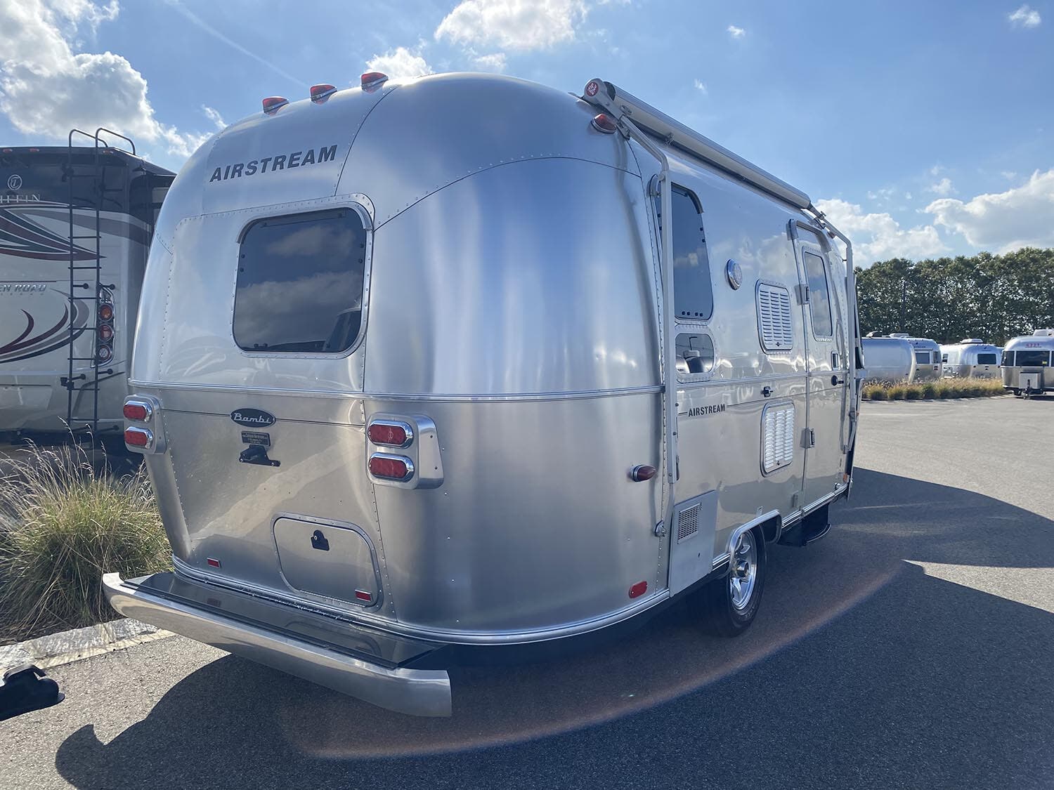 Bright Aluminum Finish/White Aluminum Finish on Roof • Polished Rear Bumper w/Storage • Flying Cloud Medallions & Graphics w/Chrome Beltline & Rub-rail Inserts • License Plate Bracket w/LED Light • Grab Handle Cast Aluminum • Aluminum LP Bottle Cover • Enclosed & Insulated Underbelly & Tanks • Dar Grey Patio Awning C.S. • C.S. & R.S. Awning Rails • Solar Stoneguard • Stainless Steel Wrap Protectors • Main Door w/Opaque Window • Diamond Plate Exterior Storage Compartment • Cast Taillights – 6″ LED Oval • Exterior Shower • Exterior LPG Service Port With Quick Connect Hose & Adapter Fitting • Portal Windows.