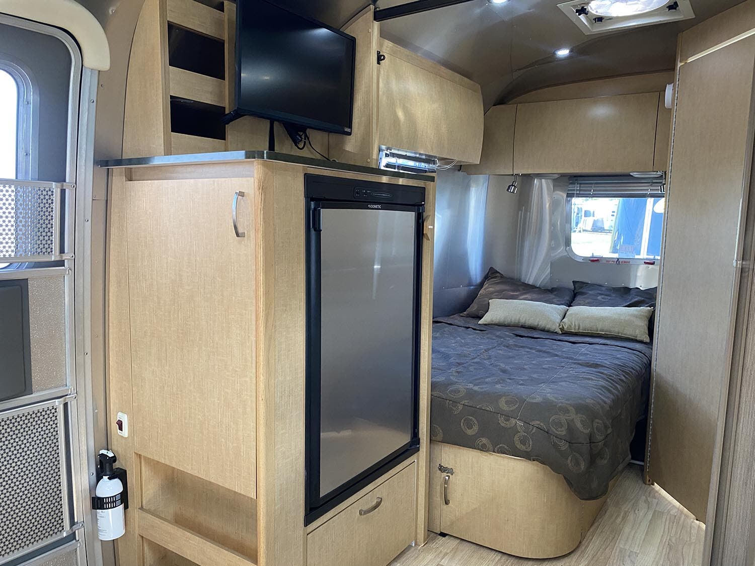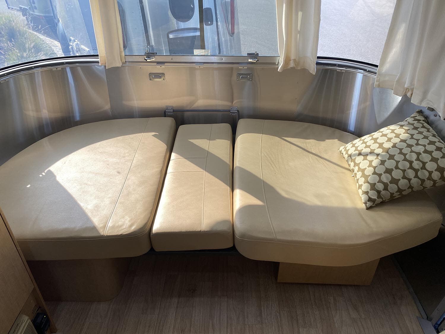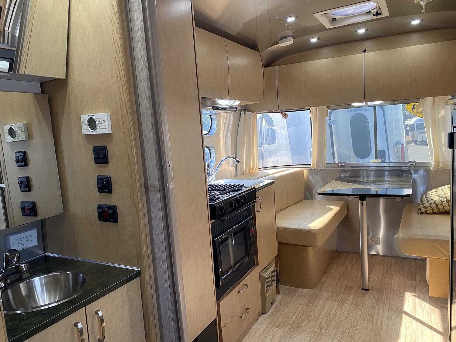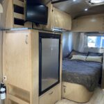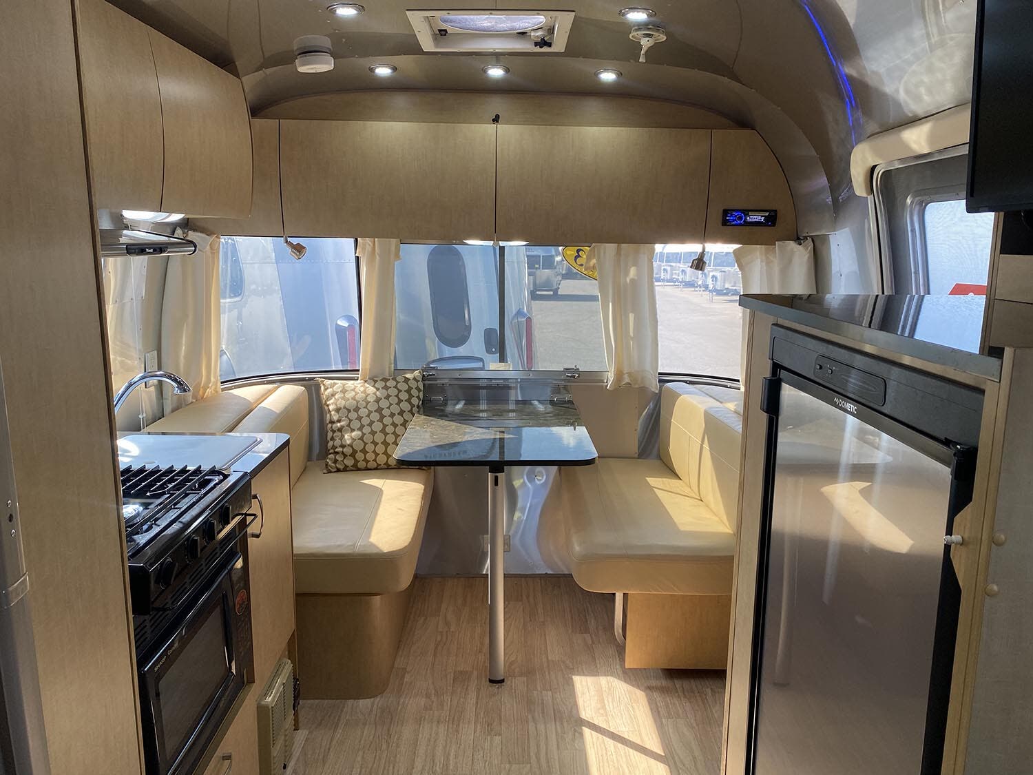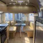 Brushed Aluminum Mini Blinds on All Windows Except Drapes on Front Panoramic Windows • Bright Aluminum Finish Interior Skin • Wood/Steel Drawer Boxes • Overhead Rooflocker With Radius Doors • Entrance Mat w/Airstream Logo • Laminate Furniture & Countertops • Interior Grab Handle • Seamless Vinyl Flooring Throughout • Satin Finish Hardware • 5 Hook Key Holder • LED Ceiling Lights • Magazine Rack (N/A 27′).