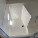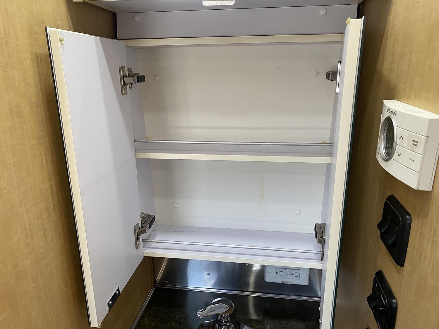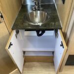 Laminated Galley Top • Sink Covers(s) • S.S. Single Bowl 18″ Sink (Double Bowl on 20′ & 23’FB) • Faucet w/Separate Sprayer • Aluminum Inserts on Refrigerator • Pantry Storage (N/A 28′) • Magazine Rack (N/A 27′) • Bi-Fold Stainless Steel Range Cover • Overhead Rooflocker w/Radius Doors • Cutlery Drawer w/Hardwood Maple Drawer Organizer • Filtered Cold Water.