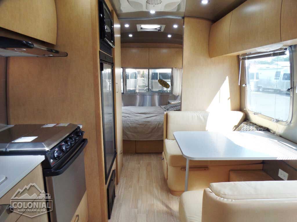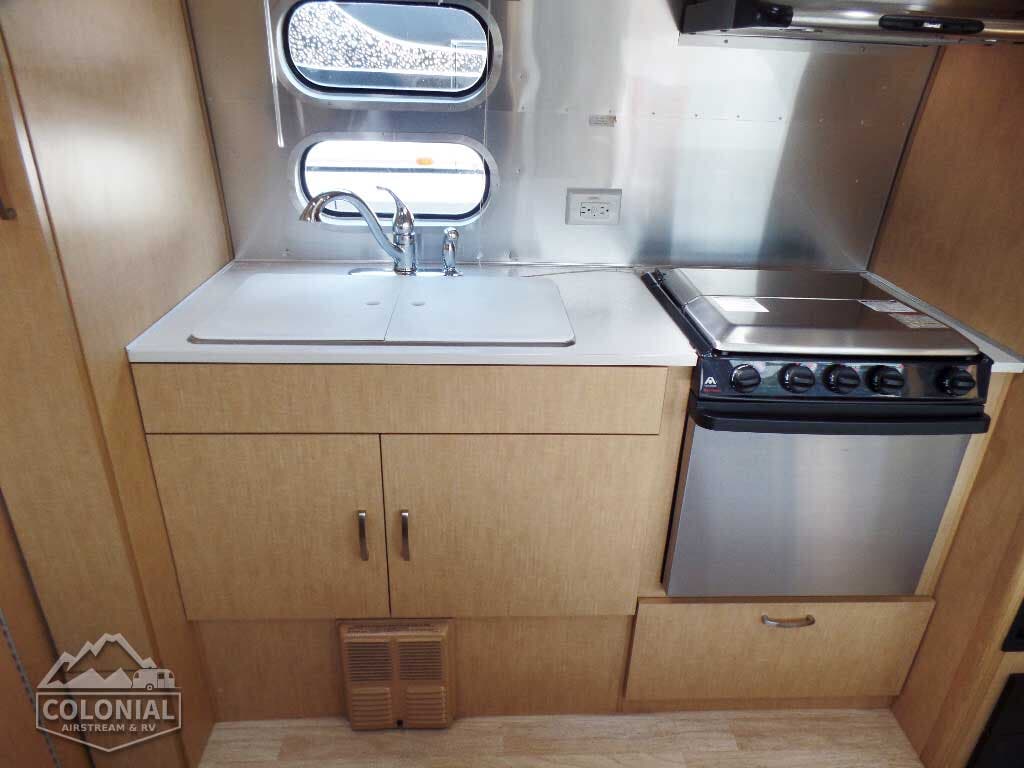 Brushed Aluminum Mini Blinds on All Windows Except Drapes on Front Panoramic Windows • Bright Aluminum Finish Interior Skin • Wood/Steel Drawer Boxes • Overhead Rooflocker With Radius Doors • Entrance Mat w/Airstream Logo • Laminate Furniture & Countertops • Interior Grab Handle • Seamless Vinyl Flooring Throughout • Satin Finish Hardware • 5 Hook Key Holder • LED Ceiling Lights • Magazine Rack (N/A 27′).