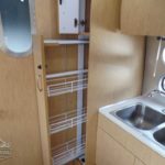 Laminated Galley Top • Sink Covers(s) • S.S. Single Bowl 18″ Sink (Double Bowl on 20′ & 23’FB) • Faucet w/Separate Sprayer • Aluminum Inserts on Refrigerator • Pantry Storage (N/A 28′) • Magazine Rack (N/A 27′) • Bi-Fold Stainless Steel Range Cover • Overhead Rooflocker w/Radius Doors • Cutlery Drawer w/Hardwood Maple Drawer Organizer • Filtered Cold Water.