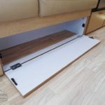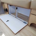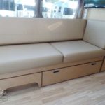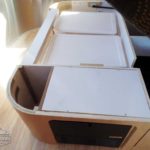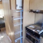 Laminated Galley Top • Sink Cover(s) • S.S. Single Bowl 18” Sink (Double Bowl on 20′ & 23’FB) (15.75″ Rectangular Bowl on 19′) • Faucet w/Separate Sprayer • Aluminum Insert on Refrigerator • Pantry Storage (N/A 28′) • Bi-Fold Stainless Steel Range Cover • Overhead Rooflocker w/Radius Doors • Cutlery Drawer w/Hardwood Maple Drawer Organizer • Filtered Cold Water.