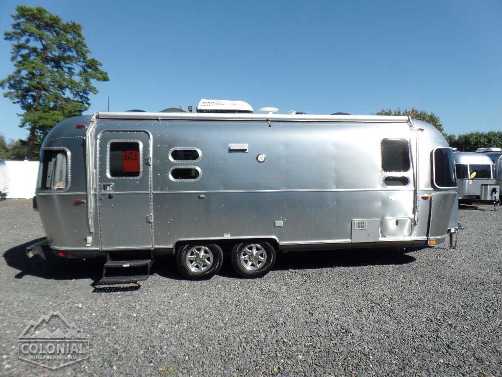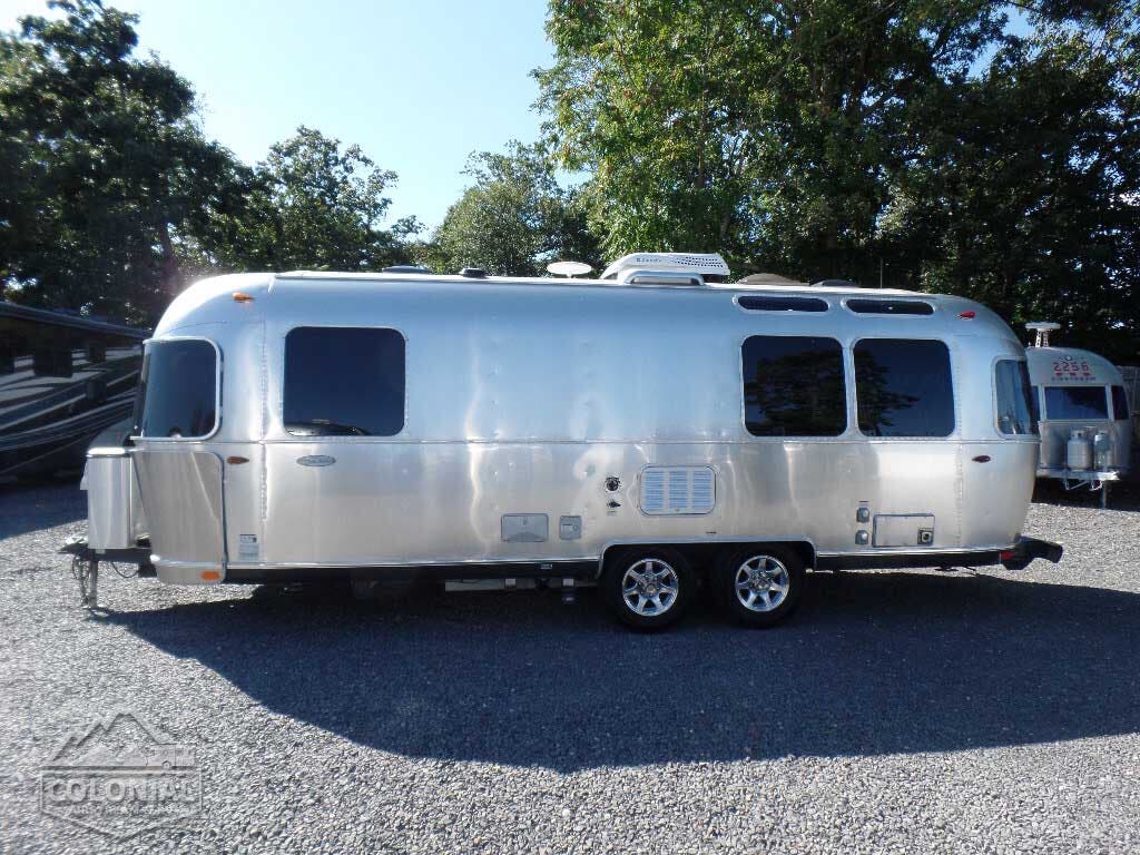 Hand Painted Front and Rear Exposed Chassis • Styled Aluminum Wheels • 3000 lb Electric Hitch Jack w/Light • 4 Stabilizer Jacks • Radial Black Wall Tires, LRD 15” (LRC 14″ – 23′ Only) • Call Colonial Airstream 1-800-265-9019 • 12″ Electric Drum Nev-R-Adjust Brakes (10″ Brakes – 23; only) • Nev-R-Lube Hubs (25′ – 30′) • Spare Tire, Bracket & Steel Wheel • Single Steel Step (19′) • Double Steel Step (20′ – 30′).