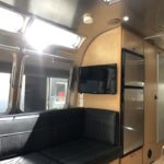Pull Roller Shades on All Windows except Drapes on Panoramic Windows (N/A 30FB) • Bright Aluminum Finish Interior Skin • Wood drawer boxes w/ full extension, self closing ball-bearing drawer glides • Overhead Rooflockers w/ Radius Doors • Entrance Mat w/Airstream Logo • Grab Handle • Vinyl Flooring Throughout • Satin Finish Hardware • 5-Hook Key Holder • LED Ceiling Lights • Magazine Rack (N/A 27′)• Laminate Furniture & Countertops.