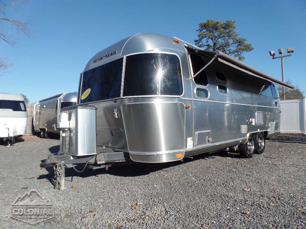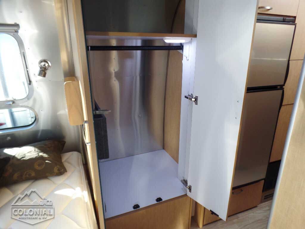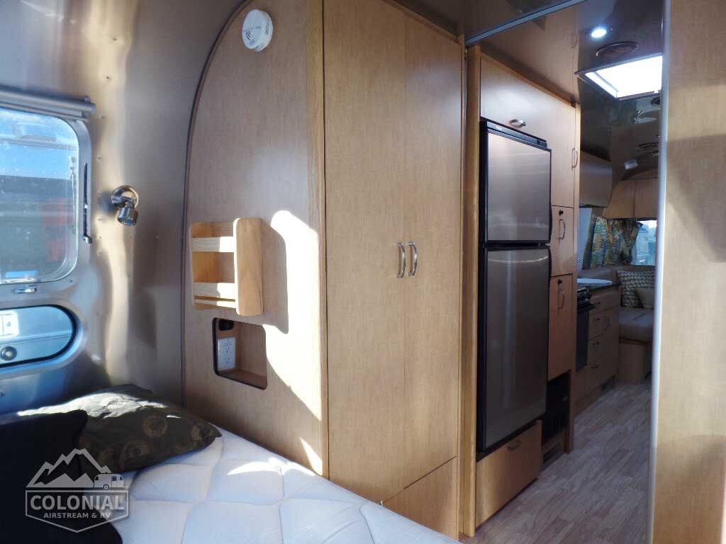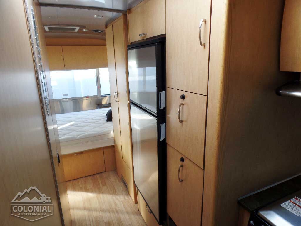 Pull Roller Shades on All Windows except Drapes on Panoramic Windows (N/A 30FB) • Bright Aluminum Finish Interior Skin • Wood drawer boxes w/ full extension, self closing ball-bearing drawer glides • Overhead Rooflockers w/ Radius Doors • Entrance Mat w/Airstream Logo • Grab Handle • Vinyl Flooring Throughout • Call Colonial Airstream 1-800-265-9019 • Satin Finish Hardware • 5-Hook Key Holder • LED Ceiling Lights • Magazine Rack (N/A 27′)• Laminate Furniture & Countertops.