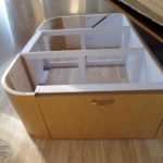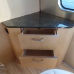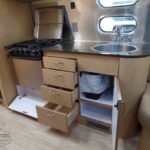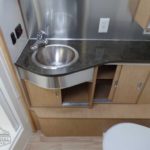Laminated Galley Top • Sink Cover(s) • S.S. Single Bowl 18” Sink (Double Bowl on 20′ & 23’FB) (15.75″ Rectangular Bowl on 19′) • Faucet w/Separate Sprayer • Aluminum Insert on Refrigerator • Pantry Storage (N/A 28′) • Bi-Fold Stainless Steel Range Cover • Overhead Rooflocker w/Radius Doors • Cutlery Drawer w/Hardwood Maple Drawer Organizer • Filtered Cold Water.