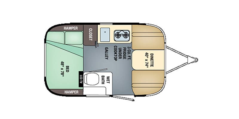 Air Conditioner w/Manual Controls & Heat Strip (11,000 BTU – 16; 13,500 BTU – 22’) • 12,000 BTU Furnace • 2 Burner Cooktop w/Glass Cover • 2-Way 3 cu. ft. Refrigerator (16’) 3-Way 4.2 cu.ft. Refrigerator (22’) • Colonial Airstream • Probeless Tank Monitoring System – Wall Mounted • Fire Extinguisher • 6 Gallon Water Heater w/Electronic Ignition • LP, Smoke & Carbon Monoxide Detectors • Comfort Air Fan • Convection Microwave (N/A 16′).