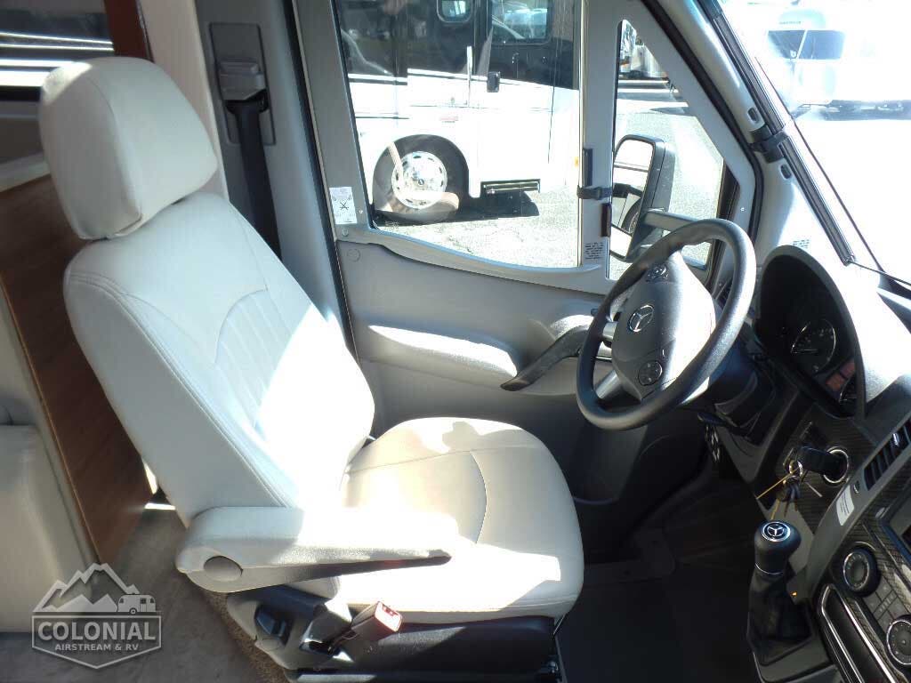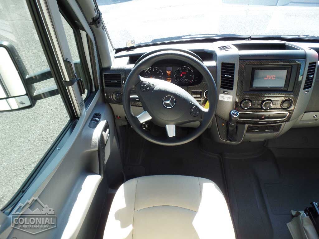 Radio/Rearview Monitor System 6″ touch screen color monitor, handheld remote, iPod®/MP3 input, color rear camera • Cab seats armrest, adjustable lumbar support, headrest, recline, swivel and slide • Airbags driver and passenger • 3-point seat belts • Power door locks w/remote • Power windows • Power mirrors w/defrost and turn signals • Cruise control • Chassis/house battery radio power switch • Power steering w/tilt wheel • Sunvisors • 12-volt powerpoints • Pleated windshield blinds • Privacy panels (cab windows) • Dash appliqué package