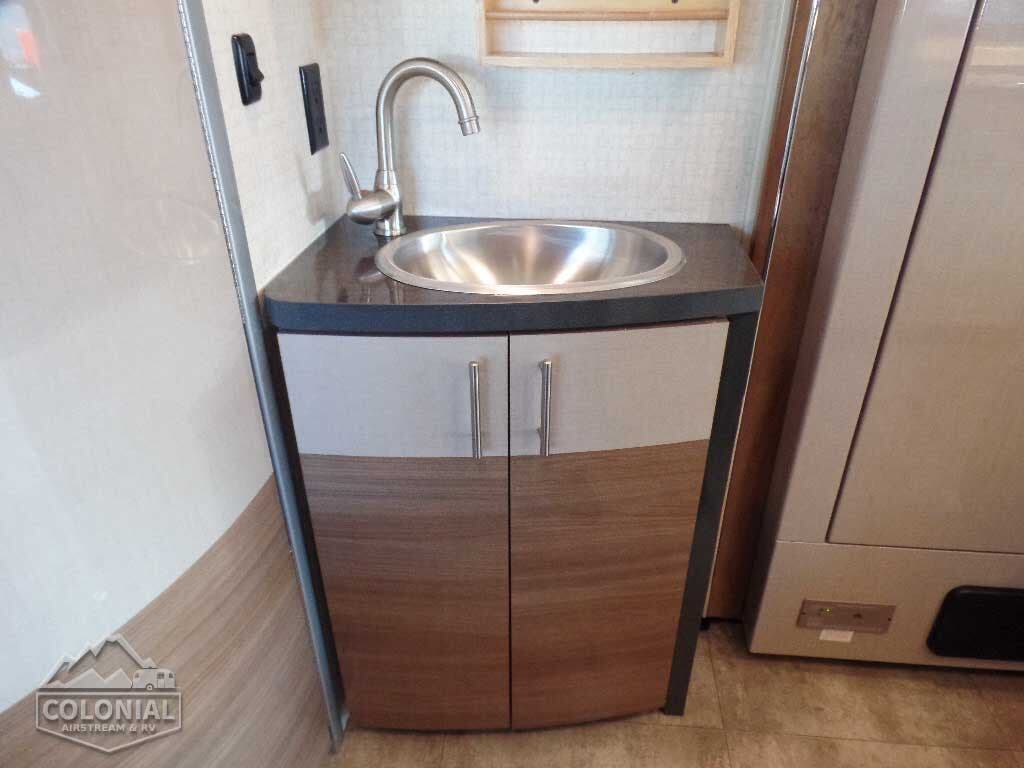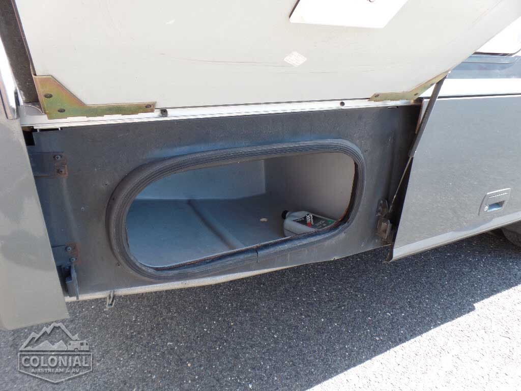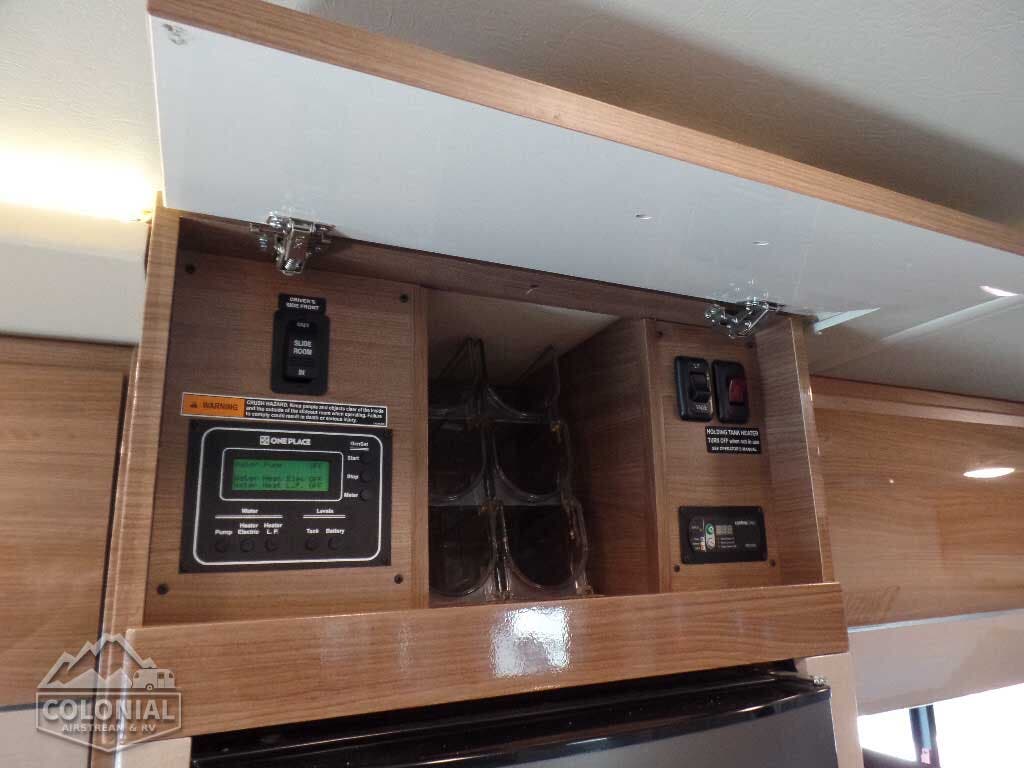 Service Center color-coded labels, city water hookup/tank diverter fill, drainage valves, exterior wash station w/lighted pump switch • 10′ sewer hose • TrueLevel™ holding tank monitoring system • 6-gallon 110-volt/LP water heater w/Energy Management System • Permanent-mount LP Tank w/remote fill w/power switches • Winterization Package water heater bypass valve and siphon tube • On-demand water pump • Lockable water tank fill