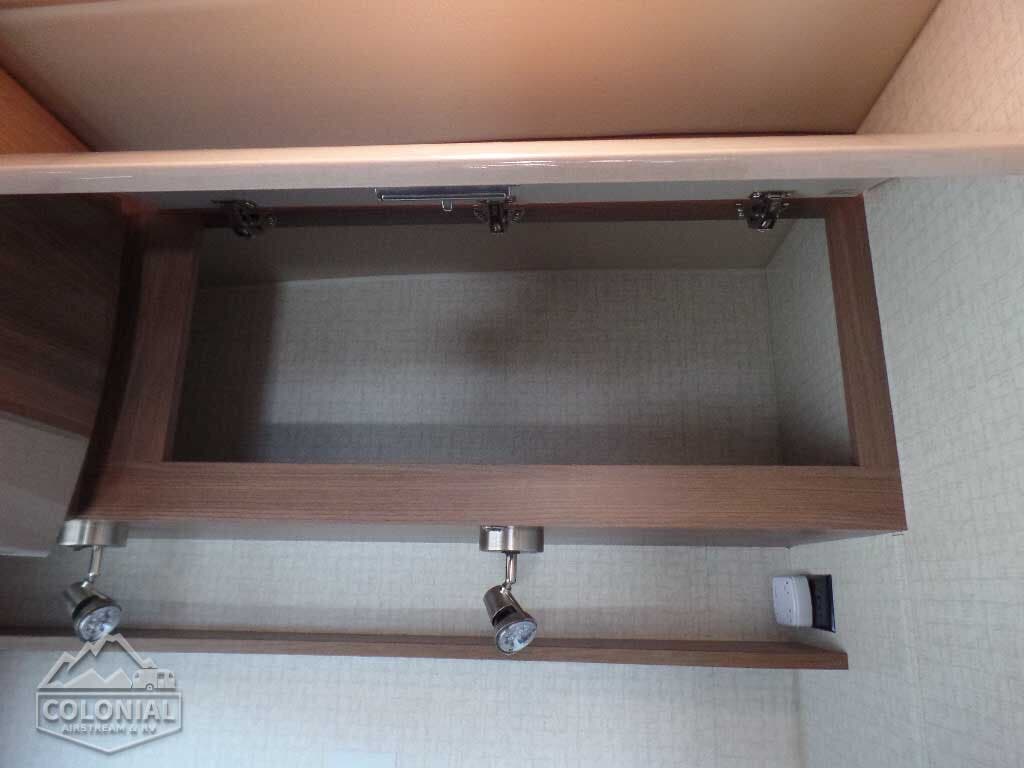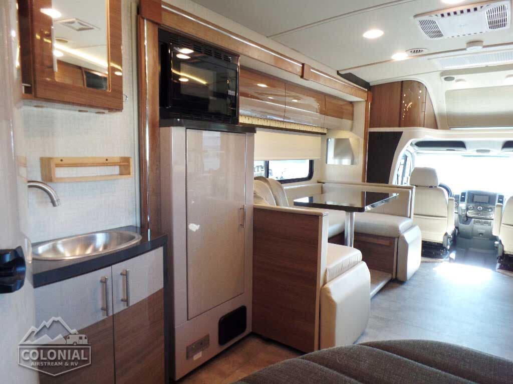 Stereo System AM/FM, alarm clock, CD/DVD player, input jack, Bluetooth™, 2 speakers and subwoofer • 28″ HDTV • LED lights • Satellite system ready • Monitor panel • Amplified digital HDTV antenna • Skylight w/shade • Mini blinds (galley) • Roof vent w/electric lift and ventilator fan (NA w/available powered skylight) • Powered roof vent (bath) • MCD blackout roller shades (bedroom) • MCD solar/blackout shades (dining/lounge area) Tinted coach windows • Soft vinyl ceiling • Interior Upgrade Package frosted galley backsplash w/accent lighting, 2 sink covers