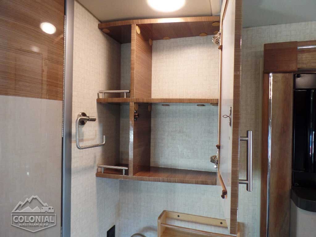Automatic entrance door step(s) • Ladder (NA 24G) • LED porch light • Step well light • Front and rear mud flaps • Premium high-gloss skin • Powered patio awning w/LED lights (full-body paint option includes metal wrap) • Storage compartments • Exterior Speakers