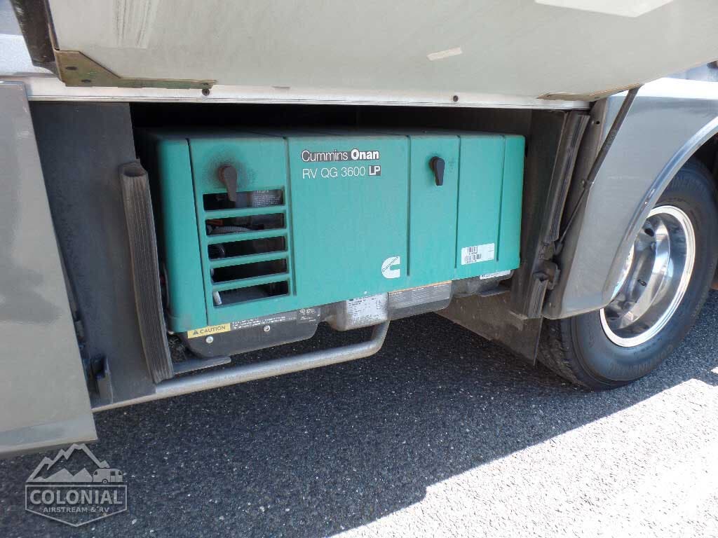 Service Center light, cable TV input, 30-amp. power cord, portable satellite dish hookup, QuickPort® service connection hatch • Auxiliary start circuit • Exterior AC duplex • Exterior antenna jack • Battery disconnect system (coach) • Automatic dual-battery charge control • AC/DC load center, 45-amp. converter/charger • 2 deep-cycle, Group 24 RV batteries • 3,600-watt Cummins Onan MicroQuiet™ LP generator • 1,000-watt DC/AC inverter