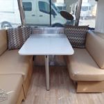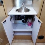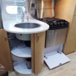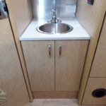 Laminated Galley Top • Sink Cover(s) • S.S. Single Bowl 18” Sink (Double Bowl on 20′ & 23’FB) (15.75″ Rectangular Bowl on 19′) • Faucet w/Separate Sprayer • Aluminum Insert on Refrigerator • Pantry Storage (N/A 28′) • Bi-Fold Stainless Steel Range Cover • Overhead Rooflocker w/Radius Doors • Cutlery Drawer w/Hardwood Maple Drawer Organizer • Filtered Cold Water.