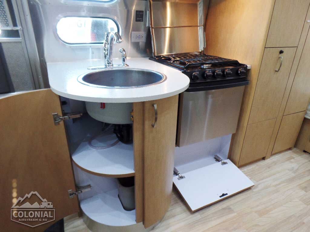 13,500 BTU Air Conditioner w/Heat Pump & Electronic Controls (19′-23′) • 15,000 BTU Ducted Air Conditioning System w/Heat Pump & Electronic Control • Comfort Control Center • Furnace w/Electronic Ignition (16,000 BTU for 19′; 18,000 BTU for 20′ & 23’FB; 25,000 BTU for 23’D; 25′ – 27′; & 30,000 BTU for 28′ & 30′) • 3-Burner Cooktop w/Oven w/Black Top & Stainless Steel Door • Microwave (23′, 25RB, 30′) • Stainless Steel Range Hood w/Vent & Light • Call Colonial Airstream 1-800-265-9019 • 2 Fantastic Vents w/Thermostat & Rain Sensor • 12 volt Bath Exhaust Fan (N/A 23’FB) • 2-Way Refrigerator (4 cu. ft. refrigerator in 19′-20′; 5 cu. ft.refrigerator in 23′; 7 cu.ft.refrigerator in 25′ – 28′; 8 cu. ft.refrigerator in 30′) • Probeless Tank Monitoring System (Wall Mounted) • 6 Gallon LP/Electric Water Heater – XT Series (Equivalent Output of a 9 Gallon Water Heater) • Fire Extinguisher • LP, Smoke & Carbon Monoxide Detectors.