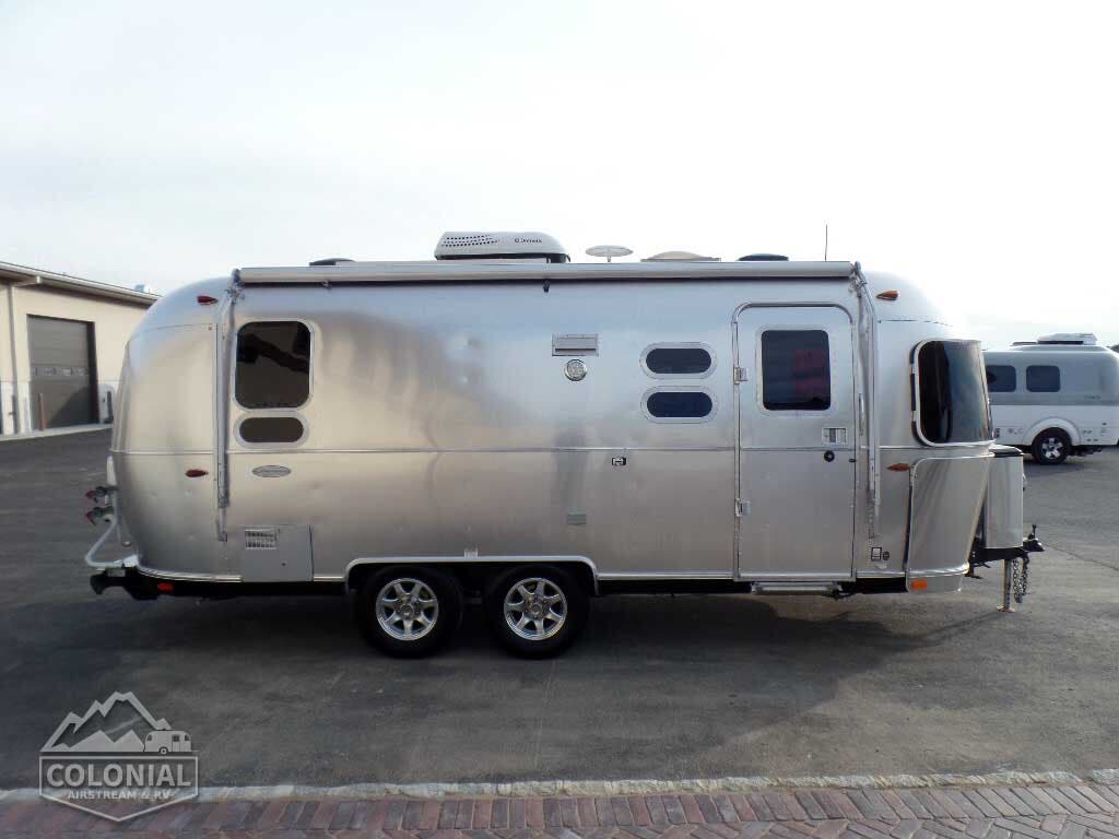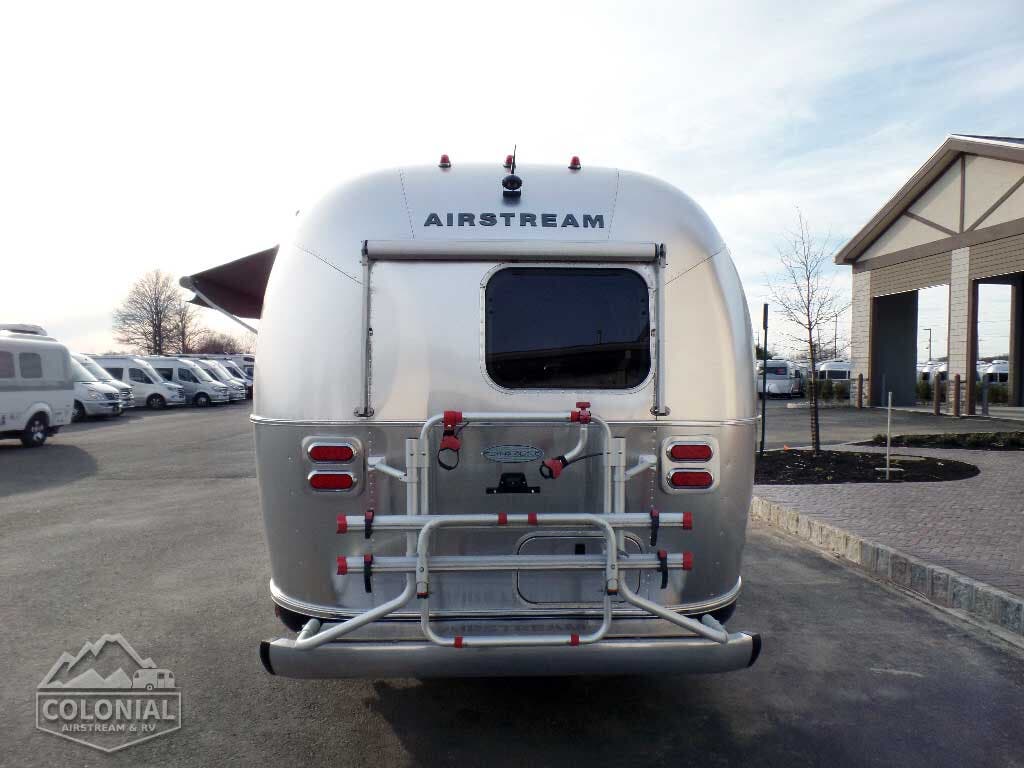 Bright Aluminum Finish / White Aluminum Finish on Roof • Polished Rear Bumper w/Storage • Flying Cloud Medallions & Graphics w/Chrome Beltline & Rub-rail w Inserts • License Plate Bracket w/LED Light • Grab H&le-Cast Aluminum • Aluminum LP Bottle Cover • Enclosed & Insulated Underbelly & Tanks • Dark Grey Patio Awning C.S. • C.S. & R.S. Awning Rails • Solar Stoneguard • Stainless Steel Wrap Protectors • Main Door w/Opaque Window • Call Colonial Airstream 1-800-265-9019 • Diamond Plate Exterior Storage Compartment • Cast Taillights – 6” LED Oval • Exterior Shower • Exterior LP Service Port w/Quick Connect Hose & Adapter Fitting • Portal Windows • LED Light Strip on Patio Awning with Dimmer Switch.