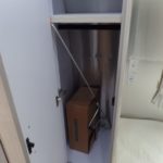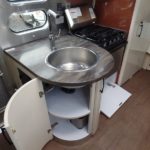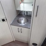 Towel Bar • Towel Ring • Robe Hook • Hinged Bath Door w/Window • Retractable Clothes Line in Shower • Stainless Steel Round Lavy Sink • China Toilet • Call Colonial Airstream 1-800-265-9019 • Mirrored Medicine Cabinet (N/A 23’FB, 25 RB & 30′) • Articulating Swivel Double-Sided Mirror (23FB, 25RB & 30 only).