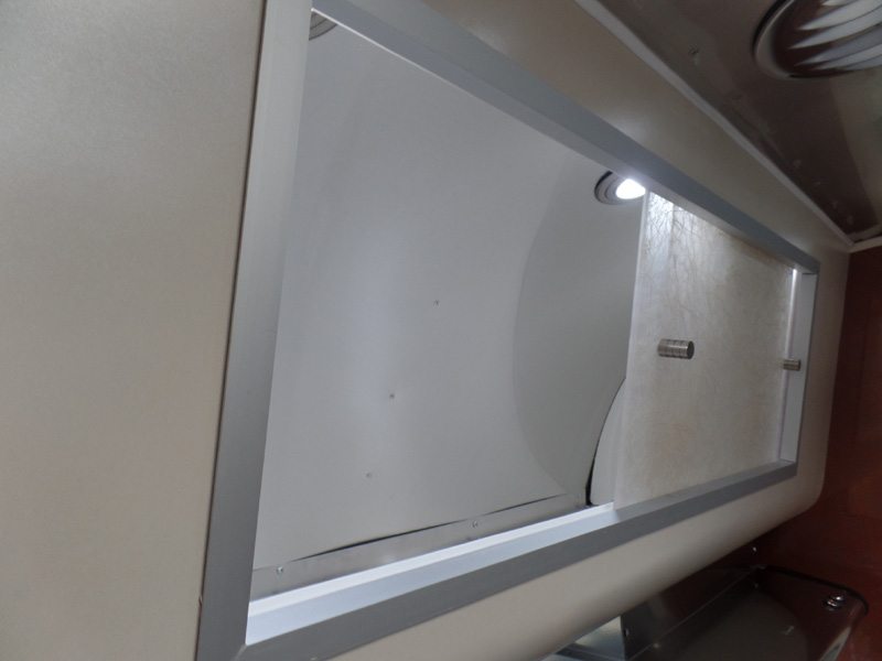 Pull Roller Shades on All Windows Ecxept Drapes on Panoramic Windows • Full Close Out Drapes At Panoramic Windows W/Blackout Linings • Bright Aluminum Finish Interior Skin • Laminate Furniture & Countertops • Wood drawer boxes w/ full extension, self closing ball-bearing drawer glides • Call Colonial Airstream 1-800-265-9019 • Overhead Rooflockers w/ Slider Doors & LED Accent Lighting • Entrance Mat w/Airstream Logo • Interior Grab Handle • Vinyl Flooring Throughout • Magazine Rack (N/A 27′)