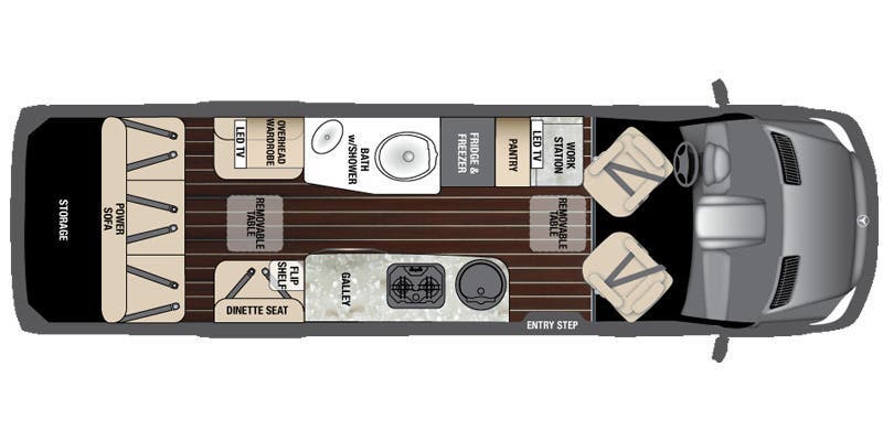 3500 Series Mercedes Sprinter Van w/Unibody Construction • Mercedes 3.0 Liter Turbo V-6 Diesel – 188 hp @3800 RMM, /325 ft/lb@ 140 -2400 RPM • 5-speed Automatic • GVWR 11,030 lb • GCWR 15,250 lb • Traveling Seating Capacity: 8 (EXT Lounge); 6 (EXT Grand Tour) • 170” Wheelbase • Rear Window Defrosters • 50 State Emissions • 24.6 Gallon Fuel Tank • Radial Tires • 220 Amp Alternator • Alcoa Dura Bright Aluminum Wheels • Full Size Spare Tire w/Crank Down Winch • Maintenance Free Chassis Battery • Push Button Battery Assist • Vertical Weight Limit of Hitch – 500 lbs (EXT) • Typical Tow Capacity – 4,200 lbs – 5,000 lbs (EXT) • Hitch Receiver and Wiring • 74 ¼” Interior Head Room • 70” Interior Width @ Floor • 24′ 4.5″ Exterior Length (EXT) • Call Colonial RV For the Best Price 800 265-9019 • 79.7” Exterior Width • 9’ 7” Exterior Height w/Antenna • Locking Fuel Fill Door • Body Insulation • Bi-Xenon Headlights • Headlight Washer System • Headlight High Beam Assist • Parktronic – Audio and Visual Front & Rear Parking Assist • Lane Keeping Assist • Collision Prevention Assist • Blind Spot Assist • Rearview Camera integrated in Third Brake Light, Side View Cameras integrated in Side Mirrors, Rear View OE Style Monitor with Rear and Side Views with with Back-up and Lane Assist Guide Lines • Child Tethers (Mid-Captains Chair(s) EXT Lounge & EXT Lounge Wardrobe).