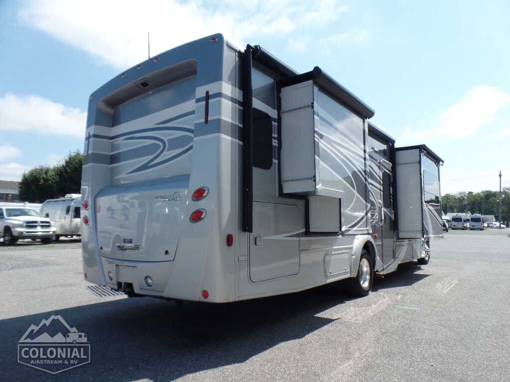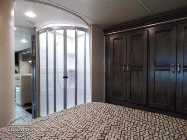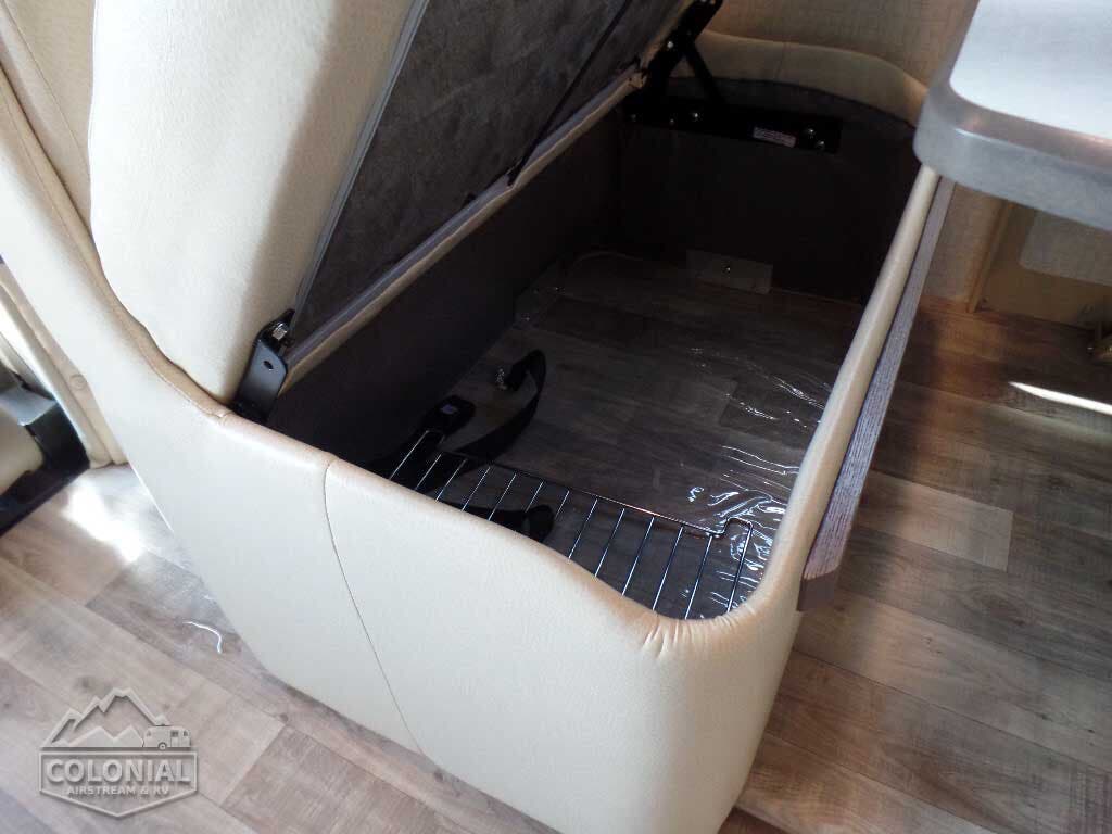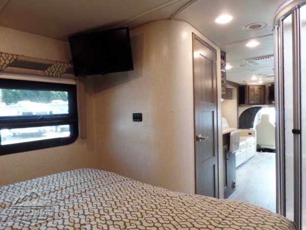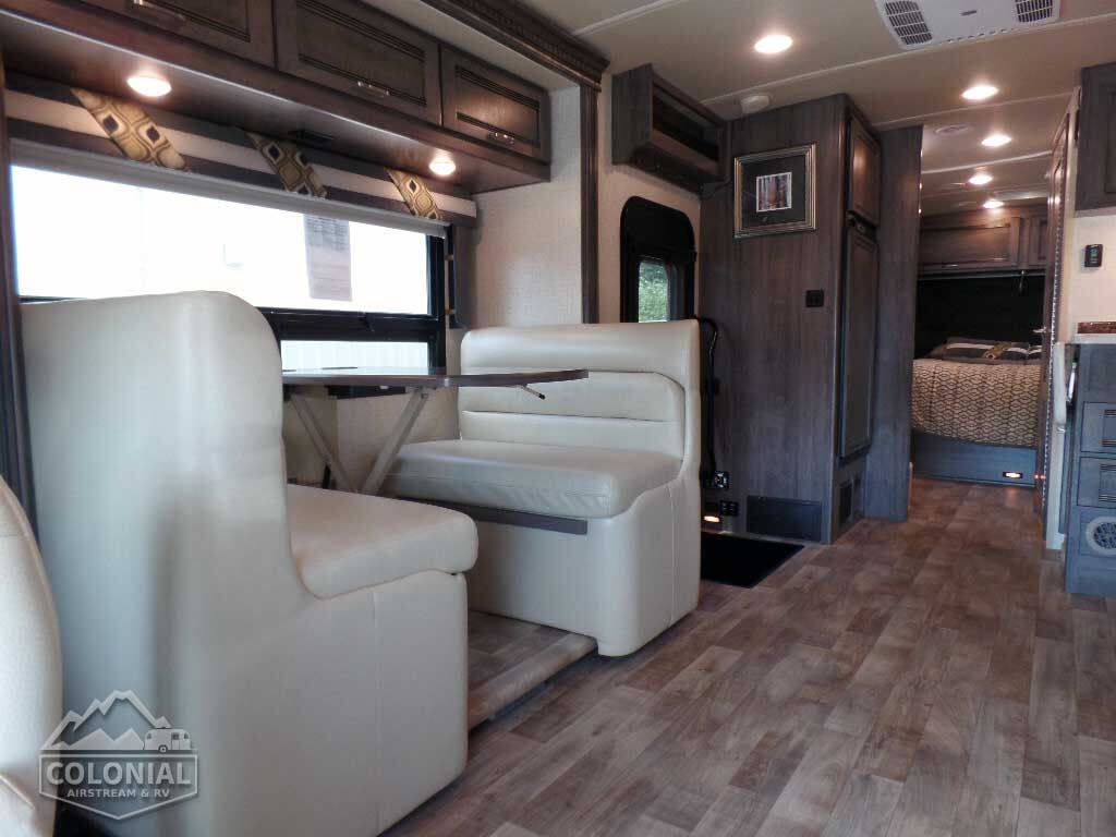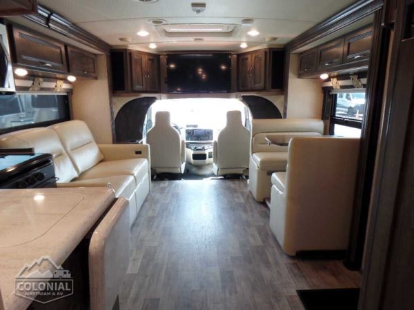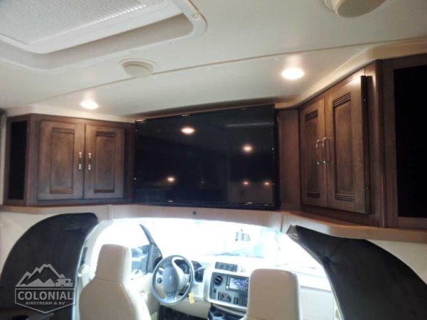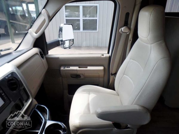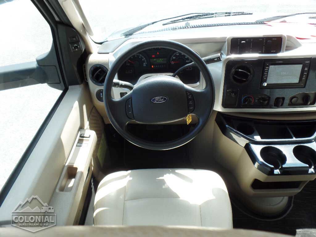 Cab seats hinged armrests, lumbar support, and multi-adjustable slide/swivel/recline • Radio/Rearview Monitor System 6″ LCD color touch screen, remote, iPod®/MP3 input, rear color camera • 3-point seat belts • Dual airbags • Chassis/house battery radio power switch • Tilt steering wheel • Cruise control • Power steering • 12-volt powerpoints • Power door locks • Sunvisors • Power exterior mirrors w/defrost