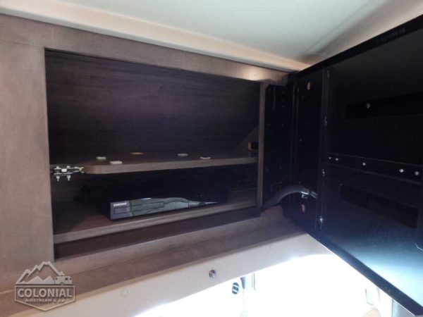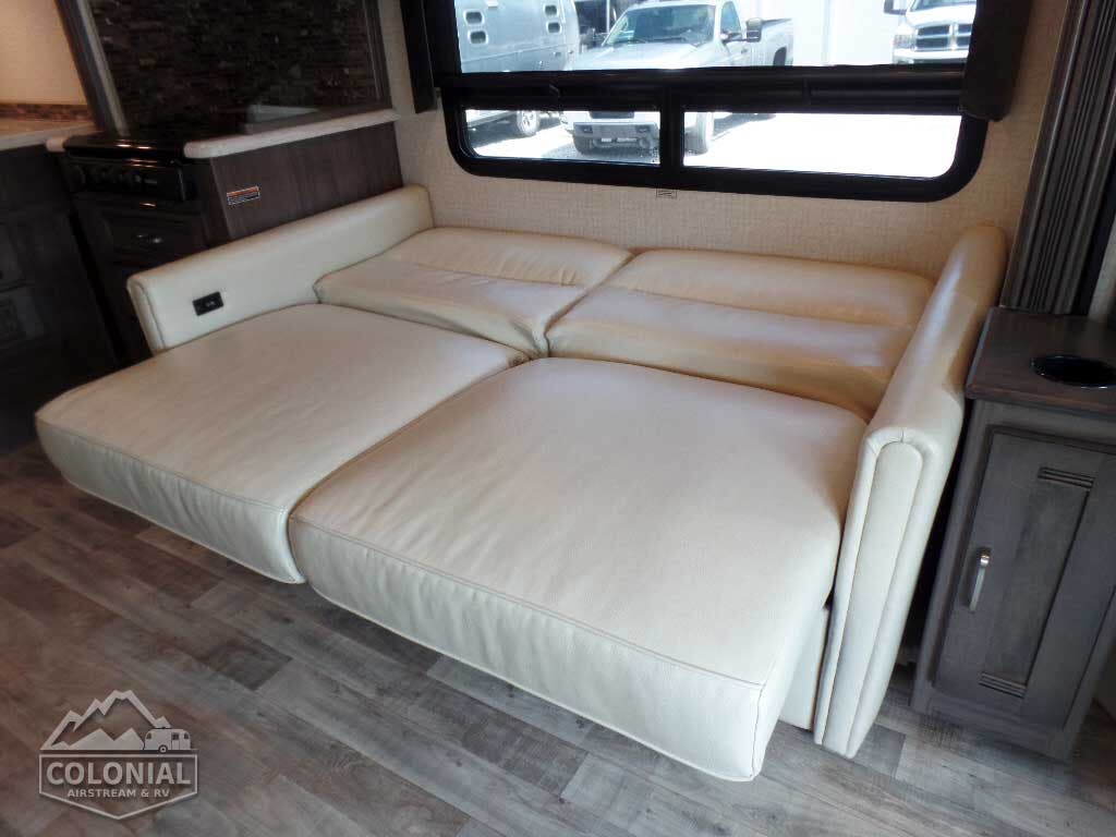 Home Theater Sound System receiver, DVD player, amplifier, 5 speakers, subwoofer • 26″ HDTV (27D, 27K) • 40″ HDTV (30J) • USB/multi-outlet charging station • LED lights • Satellite system ready • Video selection system • Front wraparound curtain • MCD blackout roller shades • Soft vinyl ceilings • Tinted windows • Amplified digital HDTV antenna • OnePlace® systems center • Powered roof vent (bath and bedroom) • Roof vent (lounge) • Powered StudioLoft™ bed w/LED lights (rear of coach) (27D)