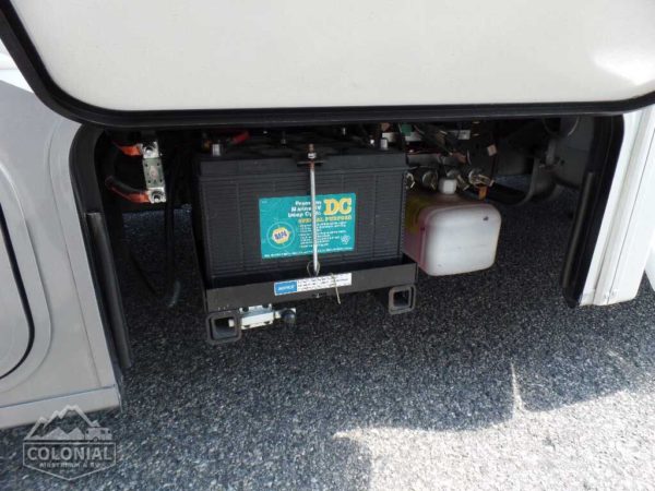 Exterior AC duplex receptacle and TV jack • 4,000-watt Cummins Onan® MicroQuiet™ gas generator • AC/DC load center, 45-amp. converter/charger • Power Cord Compartment 30-amp. power cord, shoreline/generator automatic changeover switch • Coach battery disconnect system • Automatic dual-battery charge control • Auxiliary start circuit • 2 deep-cycle, Group 31 batteries