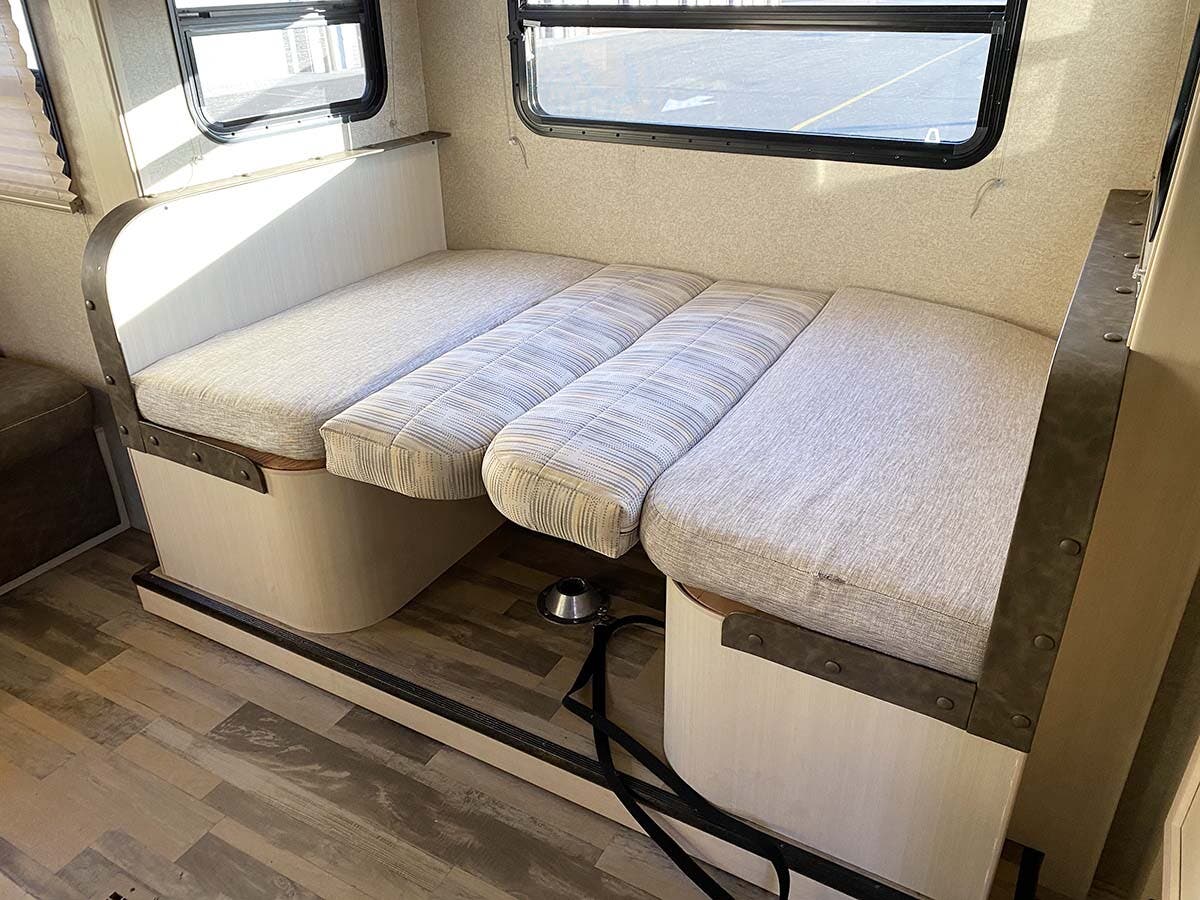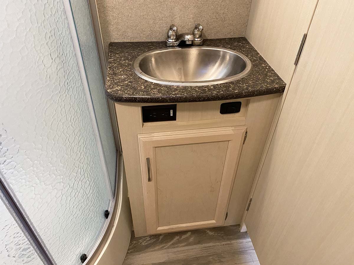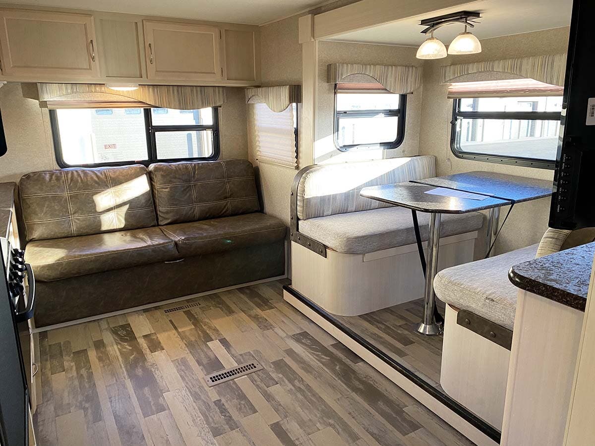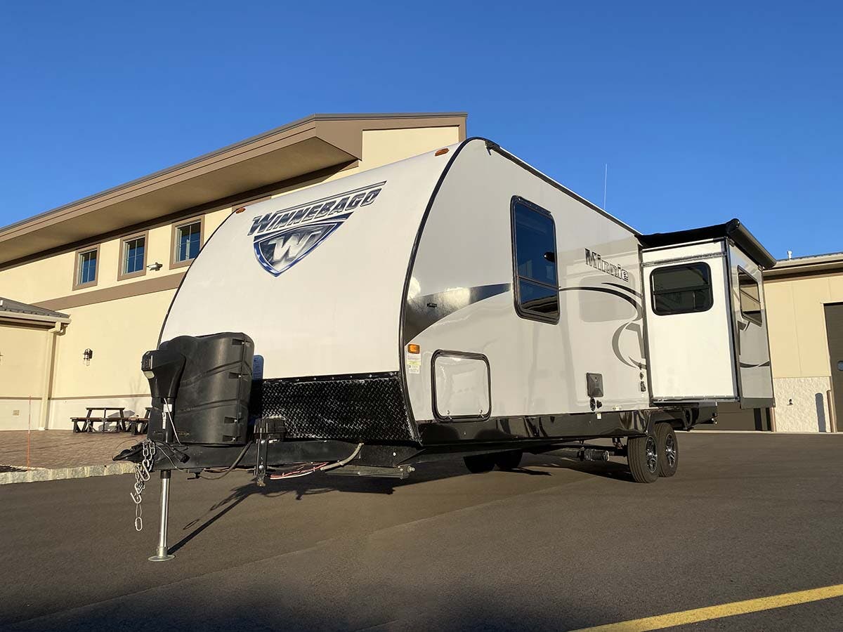 Don’t let the name mislead you, the Winnebago Minnie packs maximum features into an easy to pull lightweight camper. A full 8′ wide box provides ample living space and the power slide out creates even more! Features include a queen bed, spacious galley, and a private bathroom. Full linoleum makes the camper easy to clean and the light interior will brighten your day. Make your camper yours by choosing one of the many custom exterior colors and let your friends know you’ve arrived! Minnie continues the Winnebago tradition of providing more camper per each and every square foot!