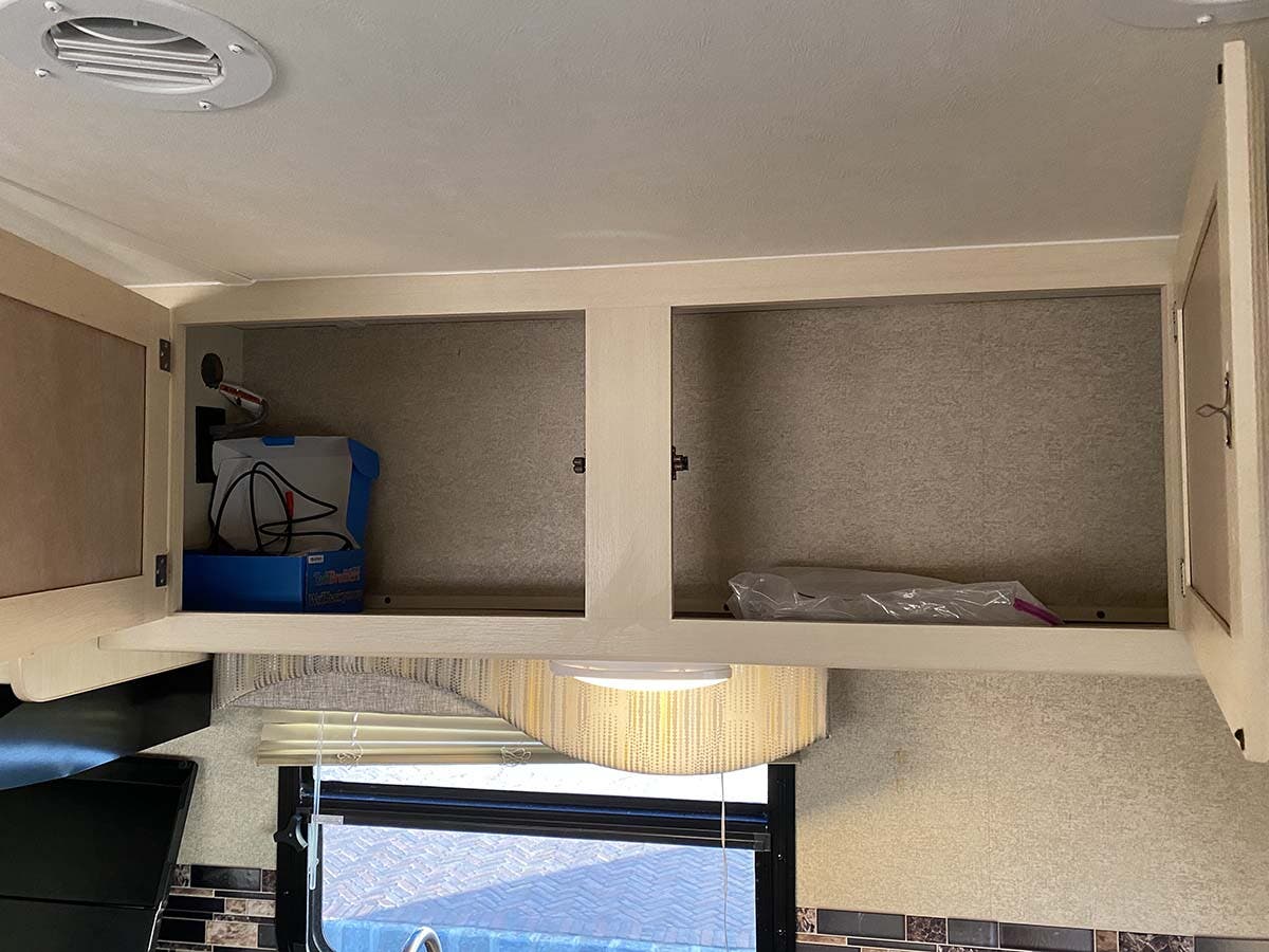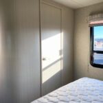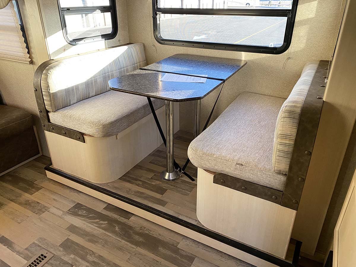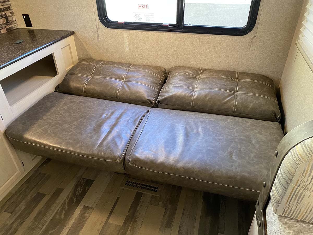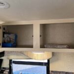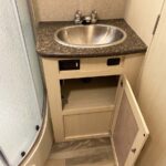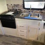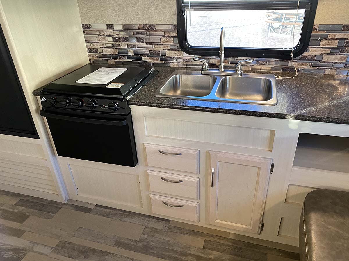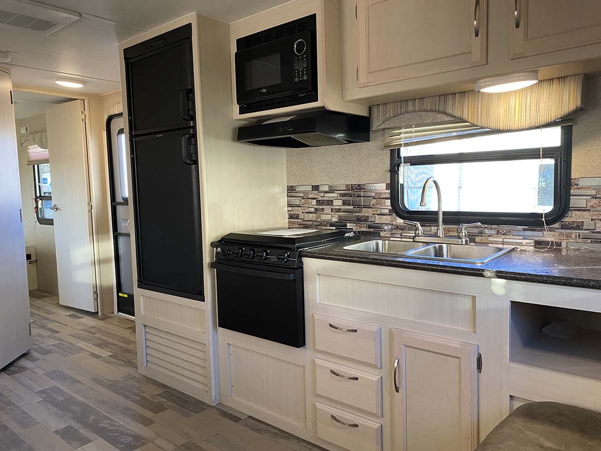 Bedspread · Cable TV Hook Up · Carbon Monoxide Detector · LP Gas Detector · Smoke Alarm · Range Hood w/ Vent · Stereo/Bluetooth/DVD/USB · Bathroom Skylight · Night Shades · Full Extension Drawer Guides · Tub Surround · Power Bath Vent · Sink Covers · LED Lighting · Stainless Steel Sink · 6 Gallon DSI/Gas/Elec Water Heater · Double Door Gas/Elec Refrigerator · 25,000 BTU Furnace · Three Burner Cooktop w Oven · Bedroom Roof Vent · Ducted Roof Air · Plywood Flooring · Foot Pedal Flush Toliet · Microwave · TV