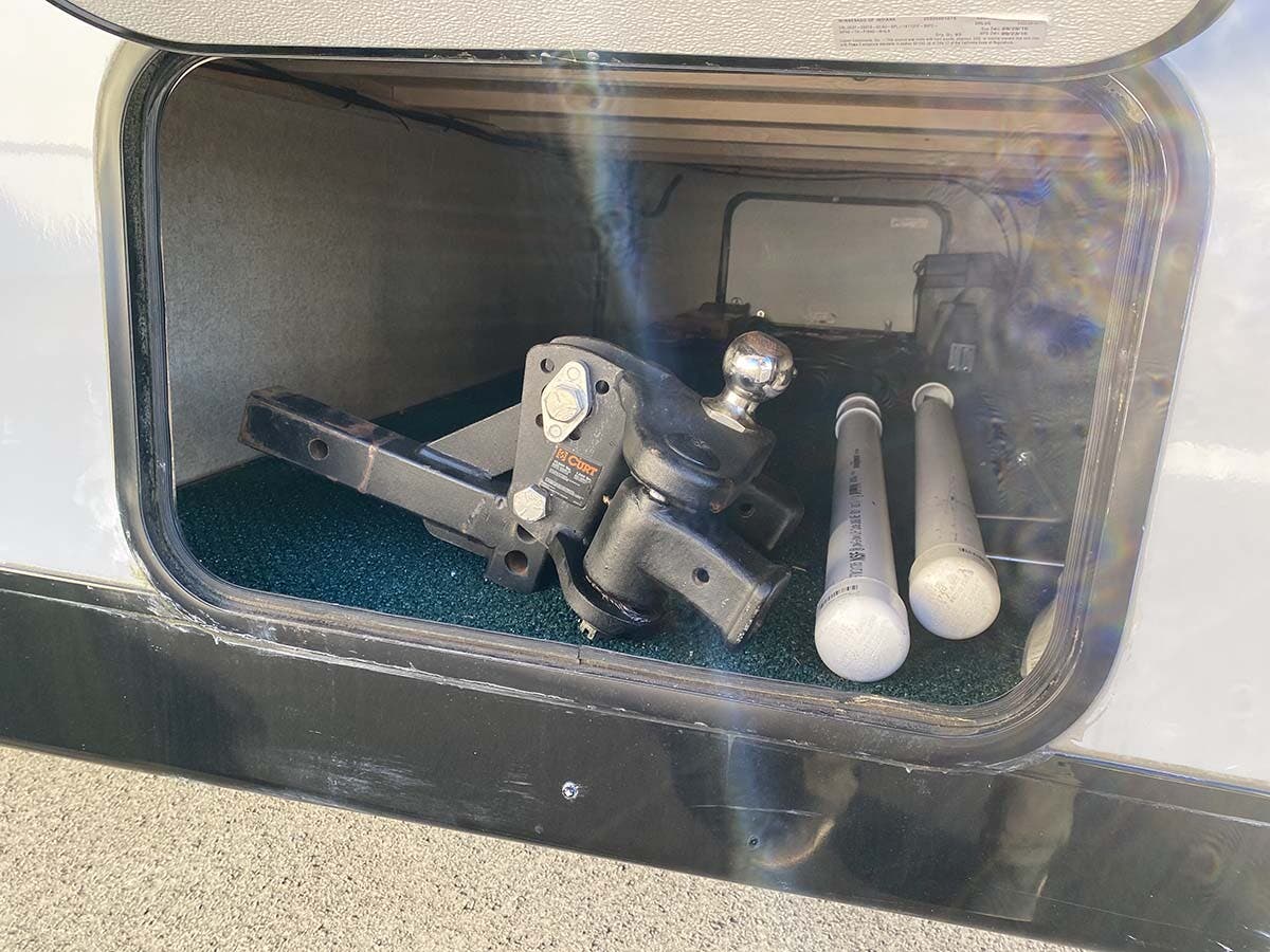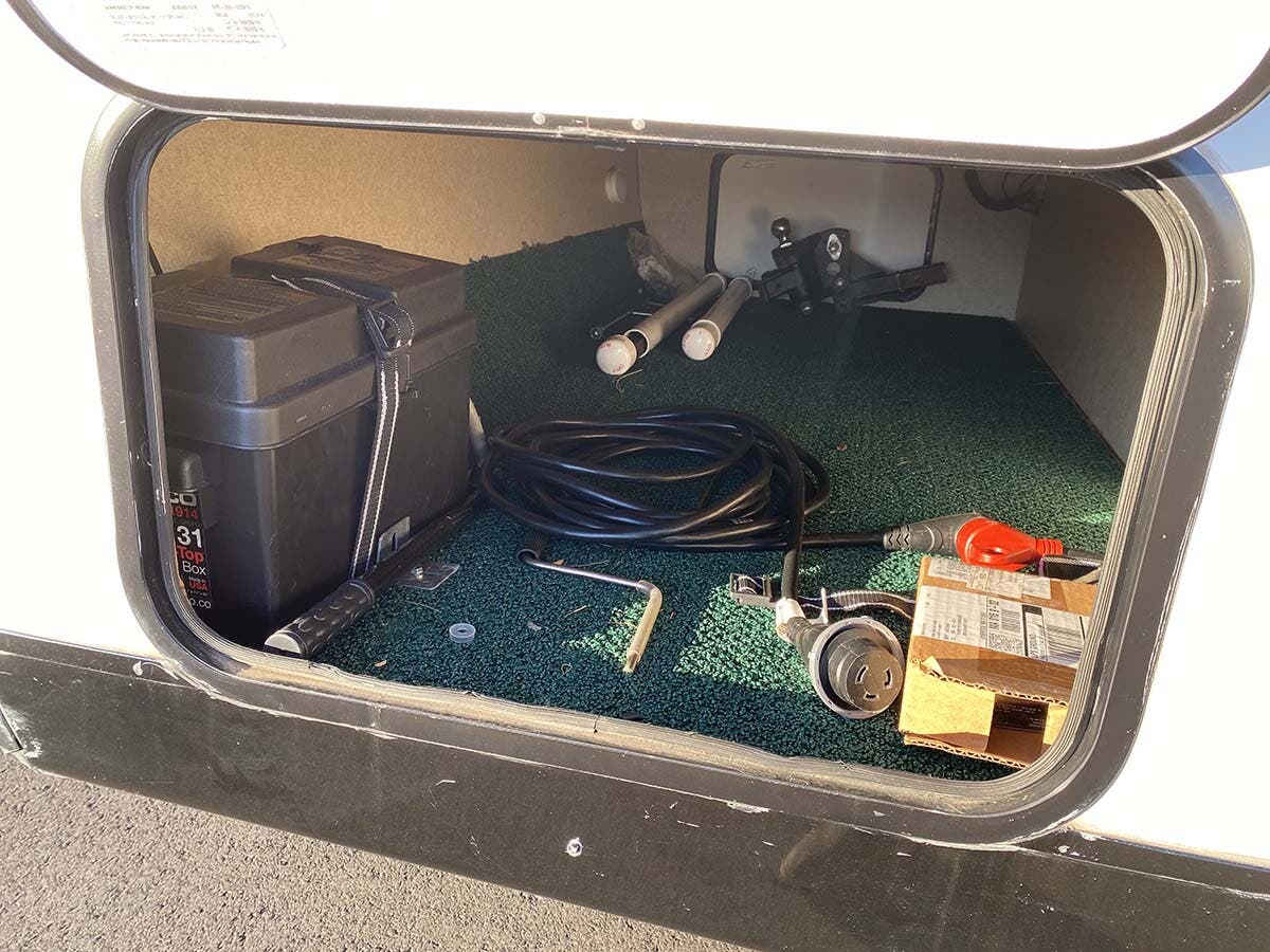 TV Antenna · Patio Speakers · Spare Tire w Carrier · LP Quick Connect · Detachable Power Cord · Diamond Plate Rock Guard · Lockable Storage Door · Satellite Hook Up · Manual Awning · Patio Light · Winterization Kit · Battery Disconnect · Bumper Sewer Hose Carrier · Aluminum Framing · Dual 20# Lp Tank · Roof Mount Stereo Antenna · 13.5 Roof Air · 4Pt Stab Jacks · Exterior TV Hook Up · Black Tank Flush · Fold Away Entry Handle · Power Awning with LED · Roof Ladder · Enclosed Tanks · Aluminum Rims · Outside Shower
