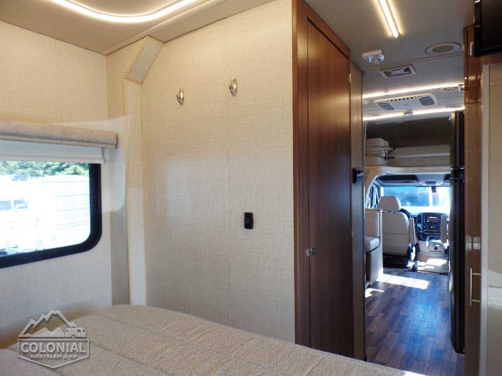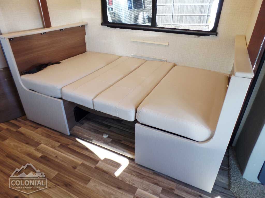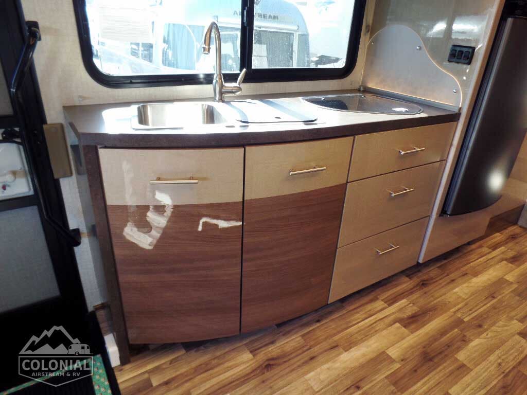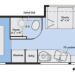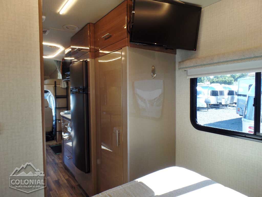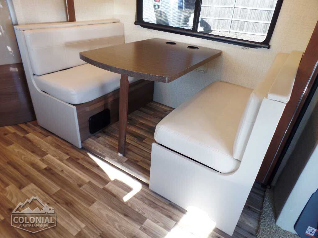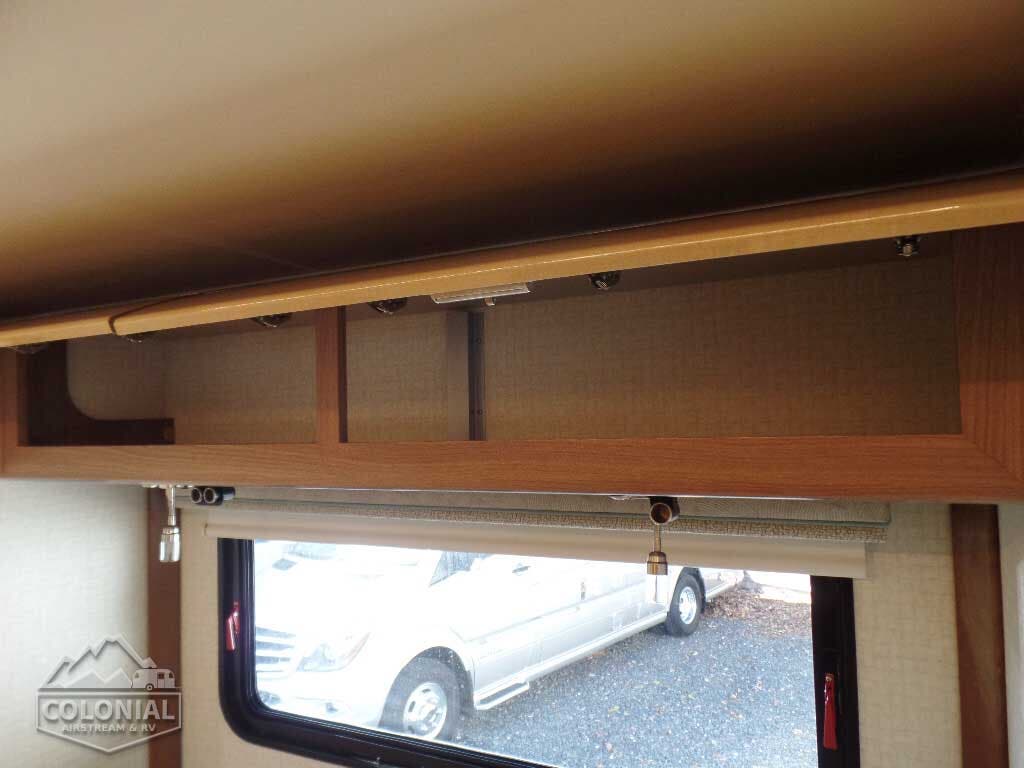 Stereo System AM/FM, alarm clock, CD/DVD player, input jack, Bluetooth™, 2 speakers and subwoofer • 28″ HDTV • LED lights • Satellite system ready • Monitor panel • Amplified digital HDTV antenna • Roof vent w/electric lift and ventilator fan (NA w/available powered skylight) • Mini blinds (galley) • Skylight w/shade • MCD solar/blackout roller shades • Tinted coach windows • Soft vinyl ceiling • Vinyl flooring throughout (24G front to bedroom) • Assist bar Mirror (24V) • USB charger • Interior Upgrade Package frosted galley backsplash w/accent lighting, 2 sink covers