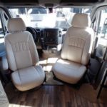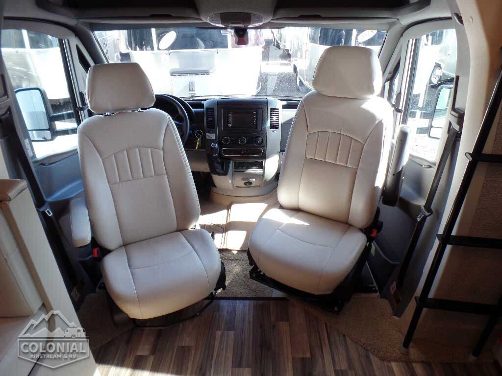 Radio/Rearview Monitor System 6″ touch screen color monitor, handheld remote, iPod®/MP3 input, color rear camera • Cab seats armrest, adjustable lumbar support, headrest, recline, swivel and slide • Airbags driver and passenger • 3-point seat belts • Power door locks w/remote • Power windows • Power mirrors w/defrost and turn signals • Cruise control • Chassis/house battery radio power switch • Power steering w/tilt wheel • Sunvisors • 12-volt powerpoints • Pleated windshield blinds • Privacy curtain (cab windows) • Dash appliqué package