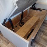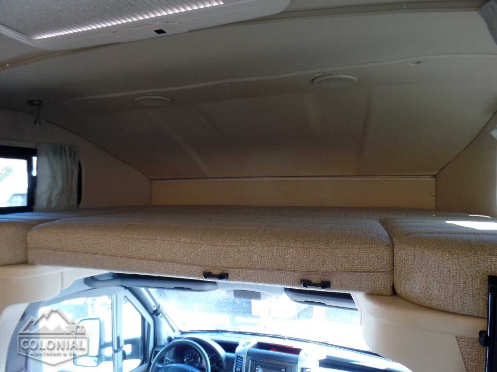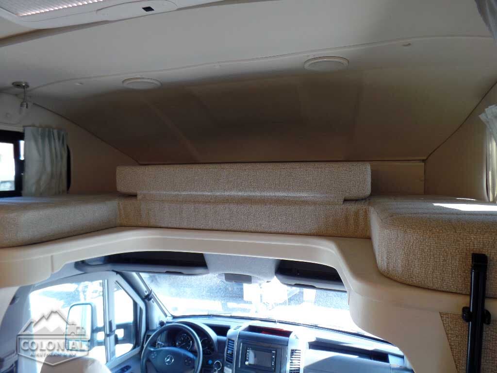 Corner bed w/headboard, foam mattress, mattress cover, and access to storage below (24J) • Queen bed w/memory foam mattress and mattress cover (24G) • Flex Bed System twin beds/queen bed w/foam mattresses and access to storage below (24V) • MCD blackout roller shades