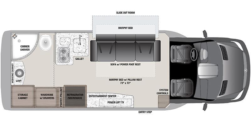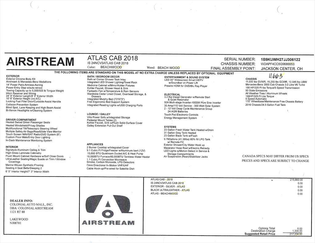 Weights & Measures, Chassis & Warranty Mercedes-Benz® Sprinter 3500 Cut-away Chassis, Mercedes-Benz® 3.0L V6 Turbo Diesel Engine BlueTEC SCR Technology, 50 State – EPA/CARB Standards — Horsepower/Torque (lbs.) 188/325, 5 Speed Automatic Transmission, Axle Ratio 3.92, Wheelbase (in.) 170, (Estimated Highway) 16-18, -Benz® Adaptive ESP® (Electronic Stability Program) Chassis Safety System, GVWR (lbs.) 11,030, GCWR (lbs.) 15,250, UBW (lbs.) 10,250, NCC (lbs.) 985, Mercedes-Benz® Hitch, 7 Pin Trailer Plug, Brake Control Pre-wired Tow Package, Tow Capacity (up to) (lbs.) 5,000, Mercedes-Benz® Trailer Stability Assist System, Overall Length 24′ 9″, Overall Height (including A/C) 10′ 6″, Overall Width 8′ 3″, Interior Height 6′ 6″, Interior Width 7′ 4.5″, Fresh Water Tank (gal.) 23, Grey Water Tank (gal.) 31, Black Water Tank (gal.) 23, LPG (gal.) (80% fill) 9.76, Fuel Tank Weight (lbs.) (80% fill) 41.38, Diesel Fuel (gal.) 26.4, Quietstream™ Ducted A/C w/Heat Pump (BTU) 15,000, Furnace (BTU) 16,000, Water Heater (On-Demand Continuous Flow) (BTU) 60,000, Heated Fresh, Grey, and Black Tanks (12-volt), Refrigerator & Freezer (12-volt) 9.1 cu. ft., Convection Microwave 1.1 cu. ft., 2 Burner Cooktop (with Integrated Cover) , LP Gas Detector, Smoke and CO2 Alarm, Fire Extinguisher, First Aid Kit, Macerator Pump Plumbing System w/Electric Retract, Omni Directional In-motion VHF/UHF TV Antenna, Cable TV Outlets/Hook-ups, Pre-wired for Satellite Dish, Touch Screen/Touch Pad Electronic Controls with Energy Management System, Multi-stage Charger (amp) 50, Pure Sine Inverter (Watt) 1,000, Diesel Generator with Remote Start (kiloWatt) 3.2, Deep Cycle Maintenance Free Group 24 AGMs (12-volt) 2, Shore Power (amp/volt) 30/110, Solar System (Watt) 300, 24/7 365 Roadside Assistance, 3 Years/36,000 Miles Airstream Warranty, Years/36,000 Miles Mercedes-Benz® Warranty, 5 Years/100,000 Miles Mercedes-Benz® Engine Warranty