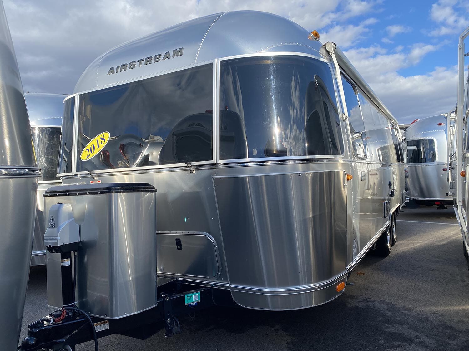 Airstream Logo Entrance Mat, Fire Extinguisher, Emergency Manual Crank for Powered Hitch Jack, LP, Smoke & Carbon Monoxide Detectors, Winterization Bypass Valve, TRA Certified Green: Emerald Status (Highest Rating), Internally Routed A/C Condensation Drain Line to Wheel Well.
