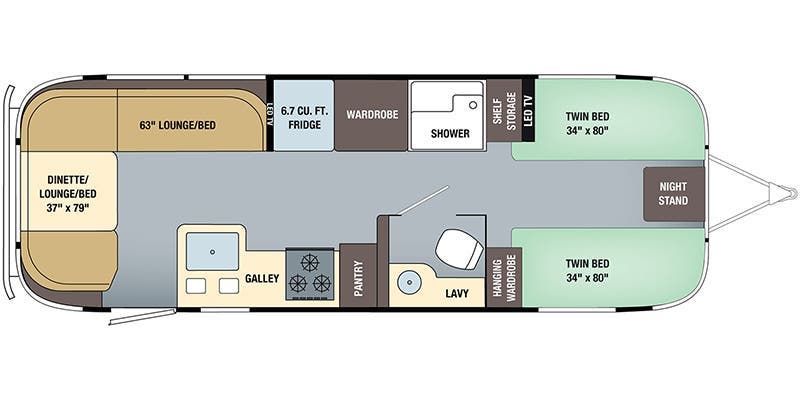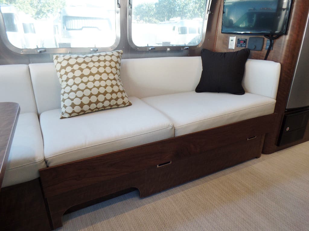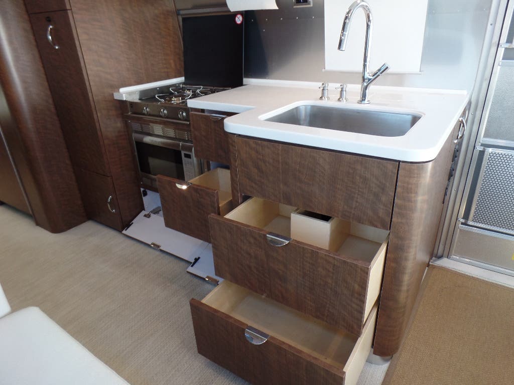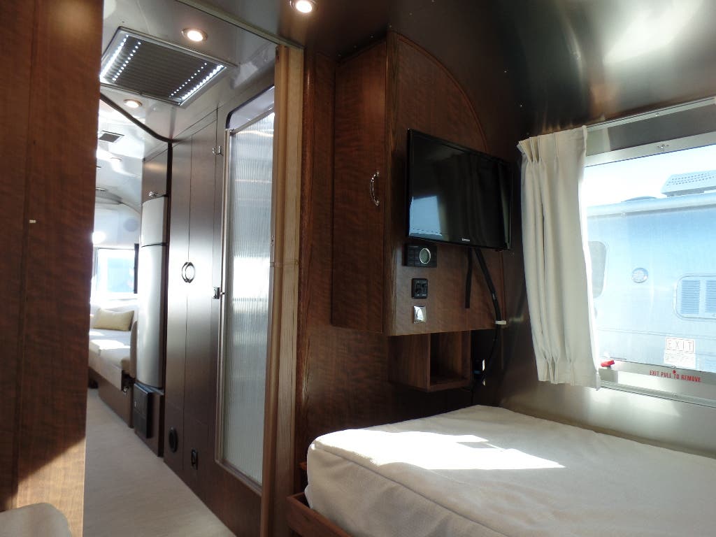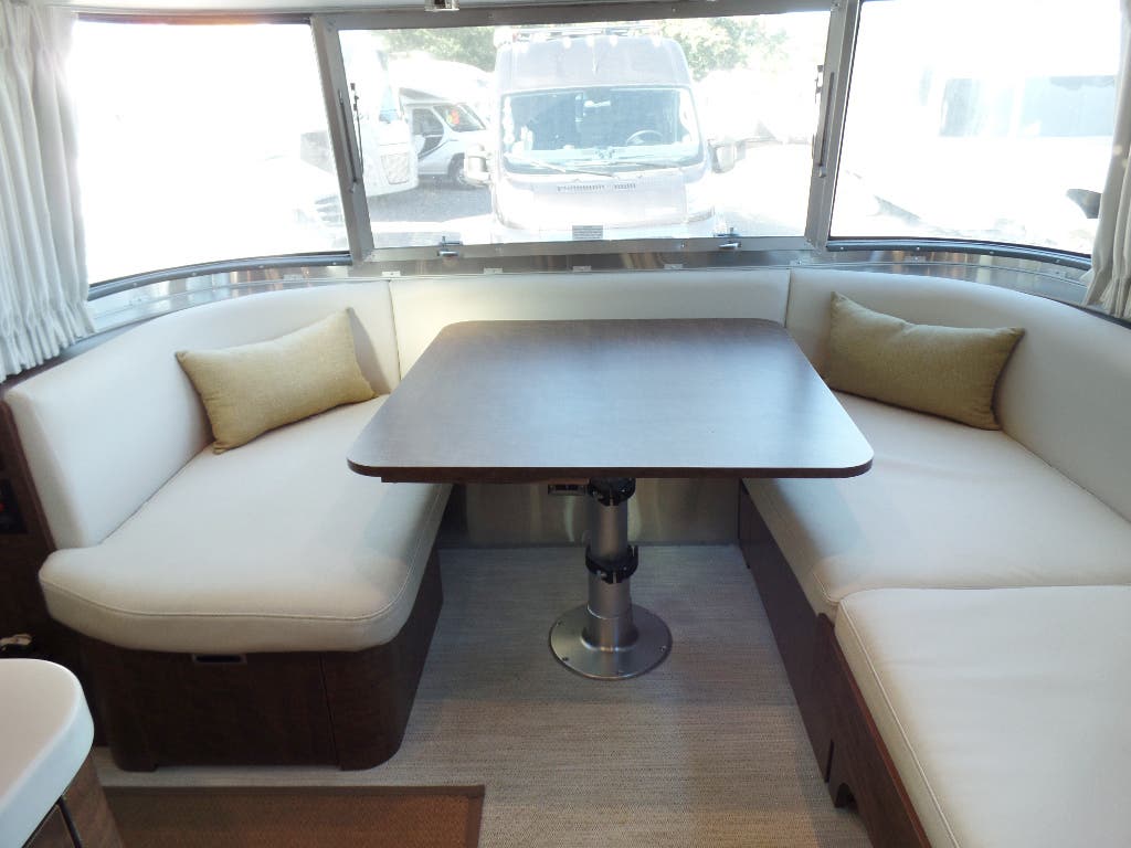 SPECIFICATIONS Exterior Length 28′, Exterior Width 8 ft. 5.5 in., Interior Width 8 ft. 1 in, Exterior Height with A/C 9 ft. 9 in, Interior Height with A/C 6 ft. 7.5 in, Hitch Weight (with LP & Batteries) 820, Unit Base Weight (with LP & Batteries) 6,195, Maximum Trailer Capacity (GVWR) (lbs.) 7,600, Net Carrying Capacity (lbs.) 1,405, Fresh Water Tank (gal.) 39, Gray Water Tank (gal.) 37, Black Water Tank (gal.) 39, 30 AMP Service Single AC with Heat Pump (BTU) 15,000, 50 AMP Service Dual AC with Heat Pump (13,500 BTU) (OPTIONAL), Ducted Furnace (BTU) 25,000, Refrigerator 3-way 6.7 cu. ft., Interior Windows & Skylights 18, Oven (LP Gas), Microwave (*Removed with Convection Option Selected), Convection Microwave Oven (*Replaces GAS Oven) (OPTIONAL), Sleeping Capacity Up to 6. EXTERIOR FEATURES Semi-Monocoque Aluminum Superstructure, Fluorocarbon Treated UV Protected Aluminum Exterior, Temperature Reducing One Piece White Aluminum Roof, Thermal Barrier Protection Between Interior and Exterior, Hand Crafted Welded Extruded Aluminum Window Frames, Tempered Tinted Windows with Double Cam Latching System, Manual ZipDee® Patio Awning with Sunbrella Fabric, Powered ZipDee® Patio Awning with Sunbrella Fabric (OPTIONAL), ZipDee® Rear & Roadside Window Awning with Sunbrella Fabric (OPTIONAL), LED Dimmable Patio Awning Light, Polished Bumper with Storage, LP (2 – 30 lb. Steel Tanks) with auto 2-stage regulator, Aluminum LP Cover, 2 Deep Cycle Batteries Group 24 Series 12V with Multi-Stage Converter, Exterior LP Quick Connect Service Port (For Low Pressure Camping Grill), Solar Front Window Protection, Stainless Steel Front Stone Guard Protection, Exterior Shower with Hot & Cold Water, Lockable Fresh Water Tank Inlet, City Water Inlet with Water Pressure Regulator, Black Tank Flush System, Hand Painted Chassis, Torsion Axle Suspension, Shock Absorber, Powered Hitch Jack with Light, 4 Powered Heavy Duty Stabilizer Jacks, Goodyear® Endurance ST225/75R15 Load Range E Tires, Balanced, Stylized Aluminum Wheels, Nev-R-Lube® Bearings, Nev-R-Adjust® Brakes, Spare Tire – Full Size, Solar Pre-wire (Rooftop & Front Access Points), Solar Package with Interior Monitor and AGM Batteries (160w) (OPTIONAL), Rear View Backup/Driving Camera Pre-wire, Rear View Backup/Driving Monitoring System (OPTIONAL), Cable TV Hookup, Satellite TV Hookup, Dedicated Waste Hose Storage, Custom Handcrafted 26” Wide Entry Door with Window, Aluminum Entry Door Handle, Unique Front Door Key with Heavy Duty Deadbolt, Cast Aluminum Door Hinges, Aluminum Bi-Fold Entry Step, LED Entrance Light, LED Tank Service Light, LED Storage Compartment Light, Cast Aluminum LED Taillights, License Plate Bracket with LED Light, Enclosed Aluminum Insulated Heated Underbelly. INTERIOR FEATURES Complete Aluminum Interior Walls and Ceiling, Quietstream™ AC with Heat Pump & Electronic Thermostat, Fantastic© Fan with Thermostat & Automatic Rain Sensor, Probeless Tank Monitoring System, EcoBatt™ Insulation, 5/8 in. WBP Tongue-and-Groove Wood Floor, Anti-wicking Outside Edge Floor Sealant, Aluminum Screen Door with Guards, Panoramic Front Windows with Pleated Blackout Shades, Hand Crafted Italian Lite-Ply Laminated Interior Cabinetry, Custom Curved Overhead Cabinets with Fingerprint Resistant Surface, Overhead Roof Cabinets with Back Lighting and Heavy Duty Hinges and Struts, Seamless Luxury Woven Vinyl Flooring, LED Interior Lighting with Dimmer, LED Interior Accent Lighting, Electric/LP Water Heater (6 gal.; 9 gal. production), 1000W Pure Sine Inverter, Coat & Key Hooks. GALLEY, DINETTE & LOUNGE FEATURES Stainless Steel 3 Burner Cooktop (LP Gas) with Glass Top, Baraldi Cooking Vent with Light, Dupont Corian® Solid Surface Galley Top, Multifunctional Storage Bins Behind Galley Sink with Dupont Corian® Covers, Moen® Stainless Steel Sink with Dupont Corian® Sink Cover, Custom Laminate Dinette Top, Award Winning Spradling HITCH® http://www.spradling.eu/collections/hitch Lounge and Dinette Seating (Stain Resistant), Dinette Converts to a Lounge and Sleeping Accommodations, Pull Out Lounge for Sleeping Accommodations, Flatware Organizer, Polk® Surround Sound FM/AM Radio with Bluetooth® (in/out), XM Ready, Blu-Ray™ DVD Player, Samsung LED HD TV with Omni Directional Antenna, Oceanair Roller Blinds, Franke Faucet. BEDROOM FEATURES Tuft & Needle Adaptive Foam Mattress, Oceanair Designer Bedspread, Decorative Throw Pillows, Sleeping Pillows, Reading LED Lights, Under Bed Storage, Wardrobe with Hanging Bar, Samsung LED HD TV, Blackout Pleated Curtains. BATHROOM FEATURES Removable Hand-Held Shower Head with Shutoff, Porcelain Toilet, Lavy Sink, Roof Vent/Fan, Towel Bar/Ring, Retractable Clothes Line in Shower, Grohe Faucet. ADDITIONAL FEATURES Airstream Logo Entrance Mat, Fire Extinguisher, Emergency Manual Crank for Powered Hitch Jack, LP, Smoke & Carbon Monoxide Detectors, Winterization Bypass Valve, TRA Certified Green: Emerald Status (Highest Rating), 2 Year Airstream Limited Warranty (Transferable), 2 Year 24/7 Coach-Net® Roadside Assistance, Internally Routed A/C Condensation Drain Line to Wheel Well.