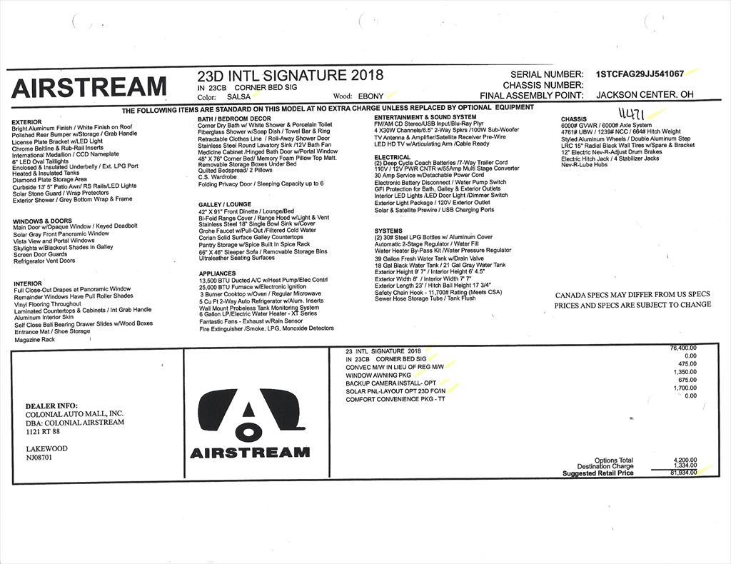 2018 Airstream International Signature 23CB - Stock# 11471