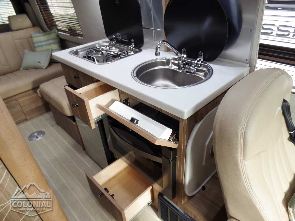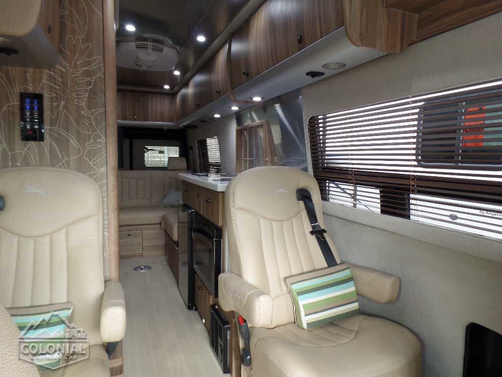 3500 Series Mercedes Sprinter Van w/Unibody Construction • Mercedes 3.0 Liter Turbo V-6 Diesel – 188 hp @3800 RMM, /325 ft/lb@ 140 -2400 RPM • 5-speed Automatic • GVWR 11,030 lb • GCWR 15,250 lb • Traveling Seating Capacity: 9 (EXT Lounge); 7 (EXT Grand Tour) 2 (EXT Grand Tour Twin) • 170” Wheelbase • Rear Window Defrosters • 50 State Emissions • 24.6 Gallon Fuel Tank • Radial Tires • 220 Amp Alternator • Alcoa Dura Bright Aluminum Wheels • Full Size Spare Tire w/Crank Down Winch • Maintenance Free Chassis Battery • Push Button Battery Assist • Vertical Weight Limit of Hitch – 500 lbs • Typical Tow Capacity – 4,200 lbs – 5,000 lbs • Hitch Receiver and Wiring • 74 ¼” Interior Head Room • 70” Interior Width @ Floor • 24′ 4.5″ Exterior Length • Call Colonial RV For the Best Price 800 265-9019 • 79.7” Exterior Width • 9’ 7” Exterior Height w/Antenna • Locking Fuel Fill Door • Body Insulation • Bi-Xenon Headlights • Headlight Washer System • Headlight High Beam Assist • Parktronic – Audio and Visual Front & Rear Parking Assist • Lane Keeping Assist • Collision Prevention Assist • Blind Spot Assist • Rearview Camera integrated in Third Brake Light, Side View Cameras integrated in Side Mirrors, Rear View OE Style Monitor with Rear and Side Views with Back-up and Lane Assist Guide Lines • Child Tethers (Mid-Captains Chair(s) EXT Lounge).