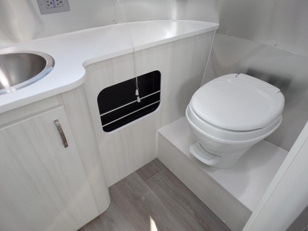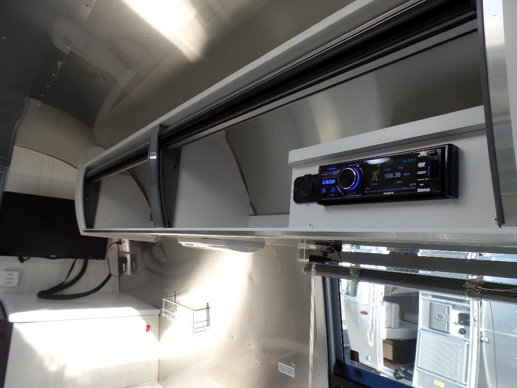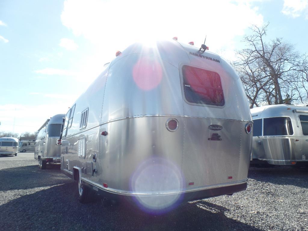 EXTERIOR Bright Aluminum Finish – White Aluminum Finish on Roof • Sport Medallion • Bambi Medallion • Chrome Beltline & Rub-Rail Inserts • License Plate Bracket w/Light • Grab Handle – Cast Aluminum • Enclosed & Insulated Underbelly & Tanks • Colonial Airstream • C.S. & R.S. Awning Rails • Light Grey C.S. Patio Awning • Main Door • 3 pc. Solar Stone Guard • Coach Guard Wrap Protectors • Aluminum LP Bottle Cover • LED Taillights w/Chrome Bezel – 4” Round • Exterior Shower • Exterior LP Service Port w/Quick Connect Hose & Adapter Fitting • Roof mounted “plug & play” solar pre-wire • Portable Solar Plug- Mounted on A-frame.
