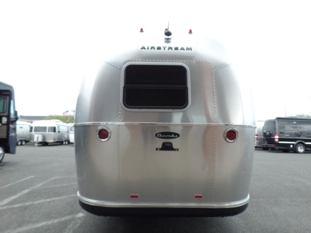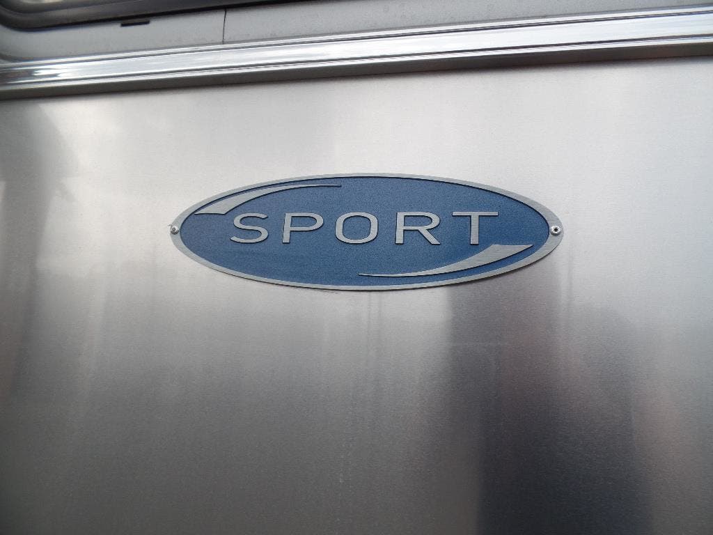 EXTERIOR Bright Aluminum Finish – White Aluminum Finish on Roof • Sport Medallion • Bambi Medallion • Chrome Beltline & Rub-Rail Inserts • License Plate Bracket w/Light • Grab Handle – Cast Aluminum • Enclosed & Insulated Underbelly & Tanks • Colonial Airstream • C.S. & R.S. Awning Rails • Light Grey C.S. Patio Awning • Main Door • 3 pc. Solar Stone Guard • Coach Guard Wrap Protectors • Aluminum LP Bottle Cover • LED Taillights w/Chrome Bezel – 4” Round • Exterior Shower • Exterior LP Service Port w/Quick Connect Hose & Adapter Fitting • Roof mounted “plug & play” solar pre-wire • Portable Solar Plug- Mounted on A-frame.