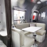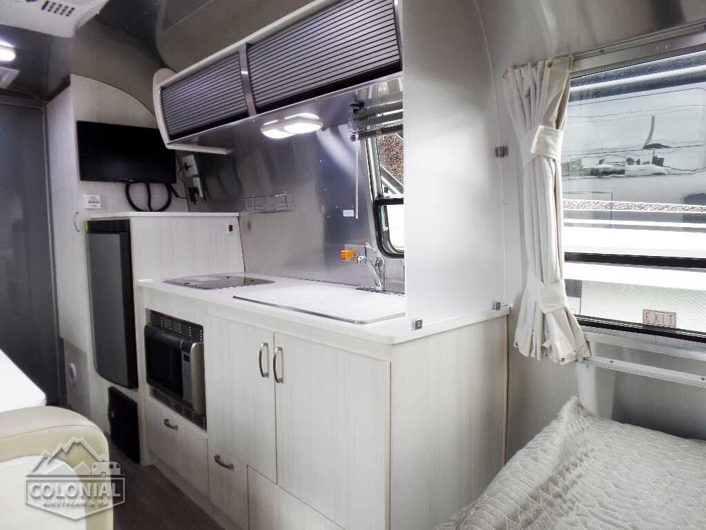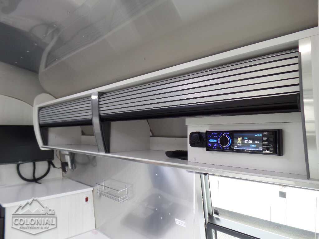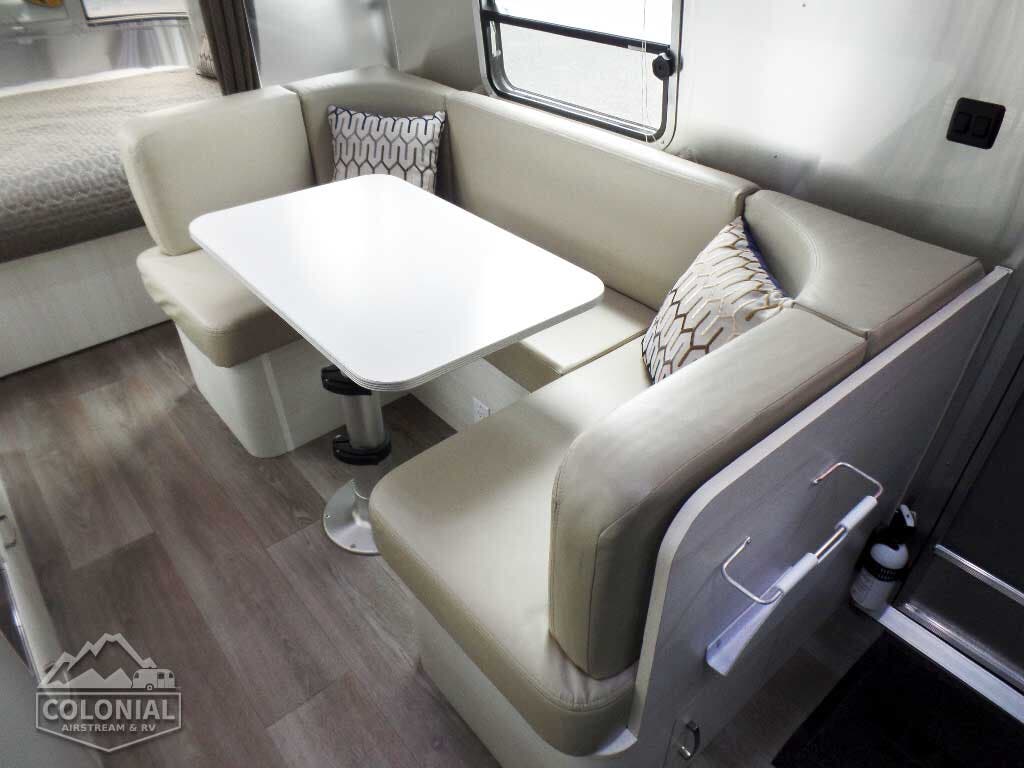 INTERIOR DECOR Brushed Aluminum Mini Blinds • Full Close-Out Drapes at Panoramic & Bedroom Windows • Laminate Furniture & Countertops • Bright Aluminum Finish Interior Skin • Seamless Vinyl Flooring Throughout • Colonial Airstream • Overhead Rooflockers w/Tambour Doors • Interior Grab Handle • Entrance Mat w/ Airstream Logo • Coat Hooks • Information Board • LED Lighting • Ultraleather Seating.
