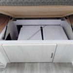 GALLEY DECOR Laminated Galley Top • Aluminum Inserts on Refrigerator • Galley Overhead Rooflocker w/Tambour Doors • Full Height Road Side Storage Cabinet • Fixed Dinette 40” X 74” (16RB); U-Dinette 74.5″ X 38” (22FB) • Colonial Airstream • Stainless Steel Sink w/Cover • Decorative Throw Pillows • Cutlery Drawer w/Hardwood Maple Drawer Organizer • Stainless Steel Galley Sink (Double on 22FB) With Seperate Faucet and Cover • Front Panoramic Black Out Curtains.