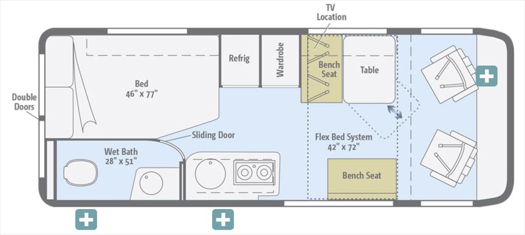 * Quick Recovery Truma Combi™ water/coach heater system runs on LP and/or 110-volt electric (includes 2-950-watt heating elements)