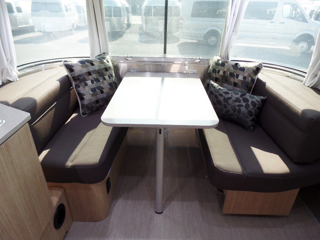 Pull Roller Shades on All Windows except Drapes on Panoramic Windows (N/A 30FB) • Bright Aluminum Finish Interior Skin • Wood drawer boxes w/ full extension, self closing ball-bearing drawer glides • Overhead Rooflockers w/ Radius Doors • Entrance Mat w/Airstream Logo • Grab Handle • Vinyl Flooring Throughout • Call Colonial Airstream 1-800-265-9019 • Satin Finish Hardware • Curtains W/Blackout Linings • 5-Hook Key Holder • LED Ceiling Lights • Magazine Rack (N/A 27FB)• Laminate Furniture & Countertops.