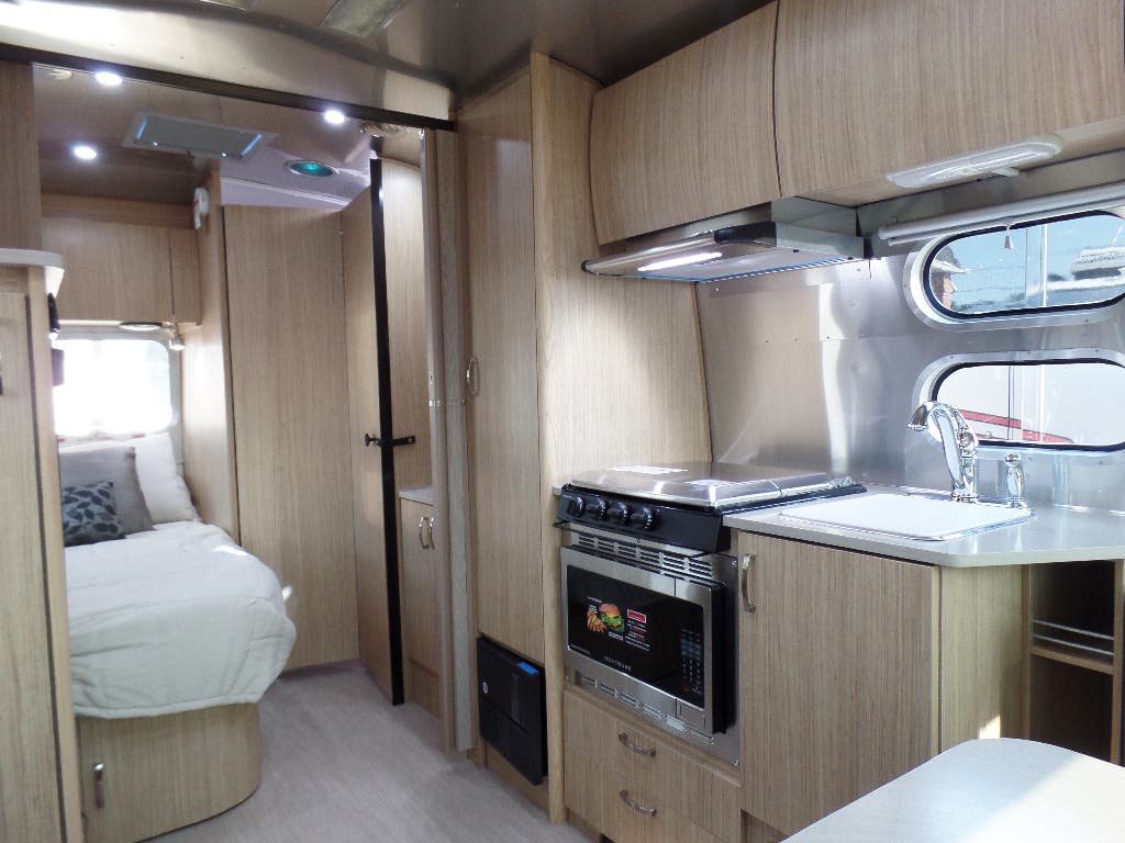 2 Deep Cycle Coach Group 24 Batteries • 7-Way Trailer Cord w/Junction Box • 110volt AC/12volt DC Power Center w/55 amp Converter and Multi-Stage Battery Charger • 12 volt ATC Fuses • Interior LED Lighting • Directional LED Reading Lights • 120 volt Exterior Outlet • Electronic Battery Disconnect • GFI Protection for Bath, Galley & Exterior Outlet • Exterior LED Lighting Package Includes: Dump Valve, Compartment, Area & Step Light • Water Pump Switch at Galley • Solar Prewire W/Roof-Top Plugs & Plug For Portable Solar at Front Trailer A-Frame • Call Colonial Airstream 1-800-265-9019 • Dimmer Switches (2) – Main Ceiling & Bedroom Lights • Remote Generator Ready (25′ – 28′) • 30 amp Service Detachable Power Cord (19C – 28′) 50Amp 30′ • 3 USB Charge Stations •1000 Watt Inverter.